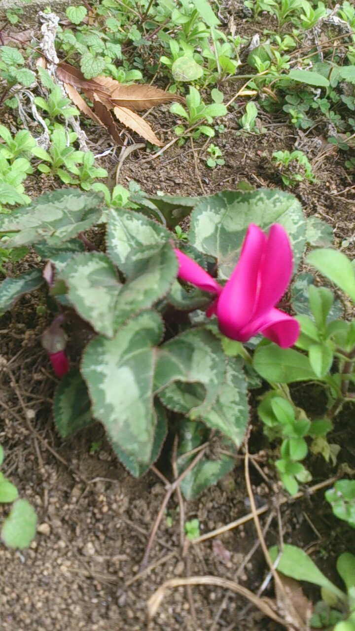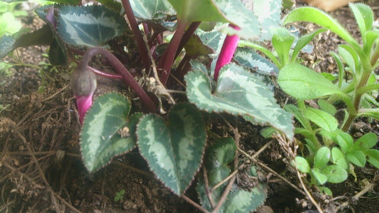 そして最近気になっているシクラメンです。庭の片隅でひっそりと元気に生きてます。先日は蕾が一つだけでしたが、いつの間にかもう一つ出てきました。開花が楽しみです。