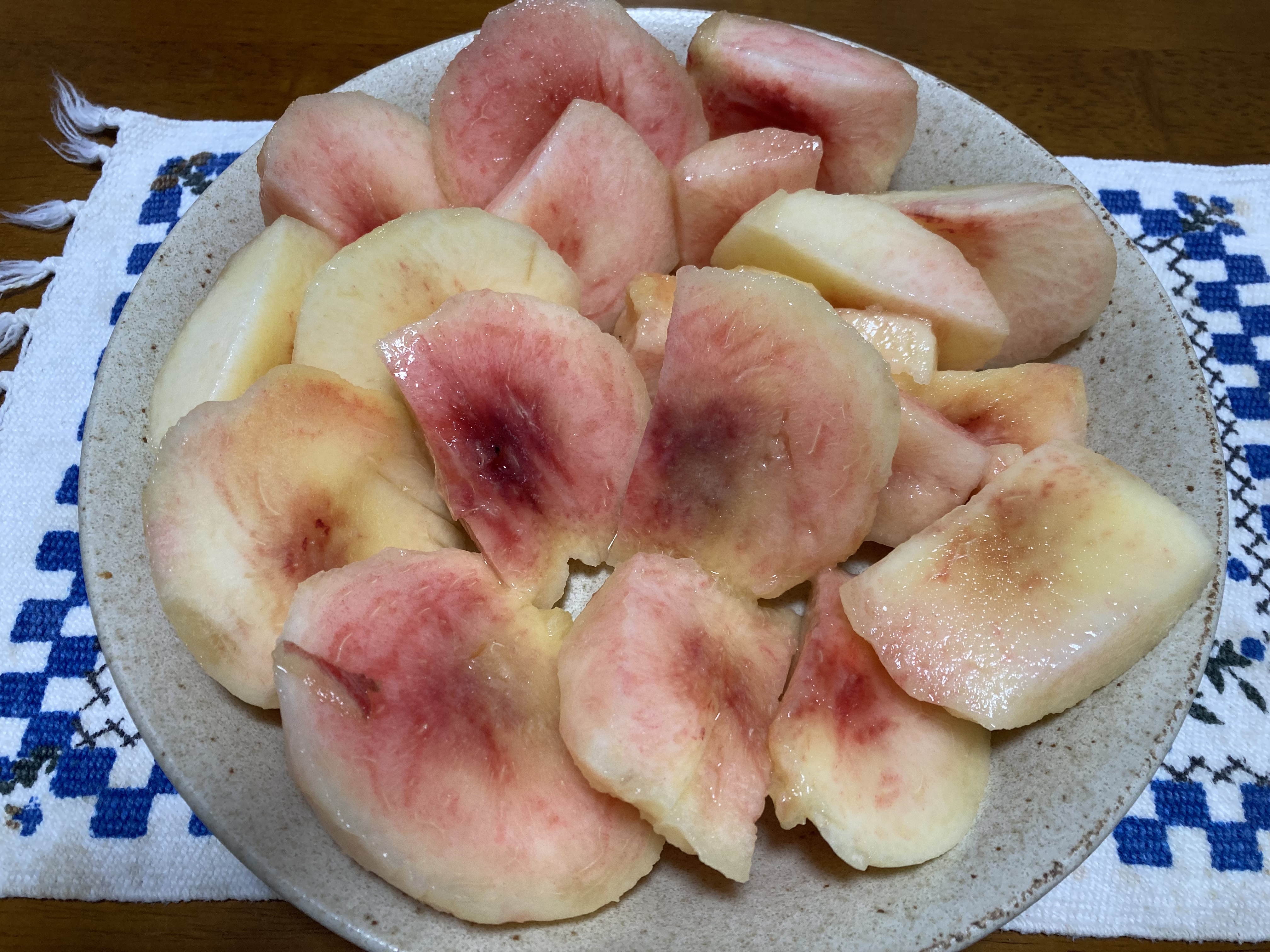 先日、福島へ行った時に買った大量の桃。あれから毎日、大量消費しているがなかなか減らない。今では見るのも嫌になるくらいだ。