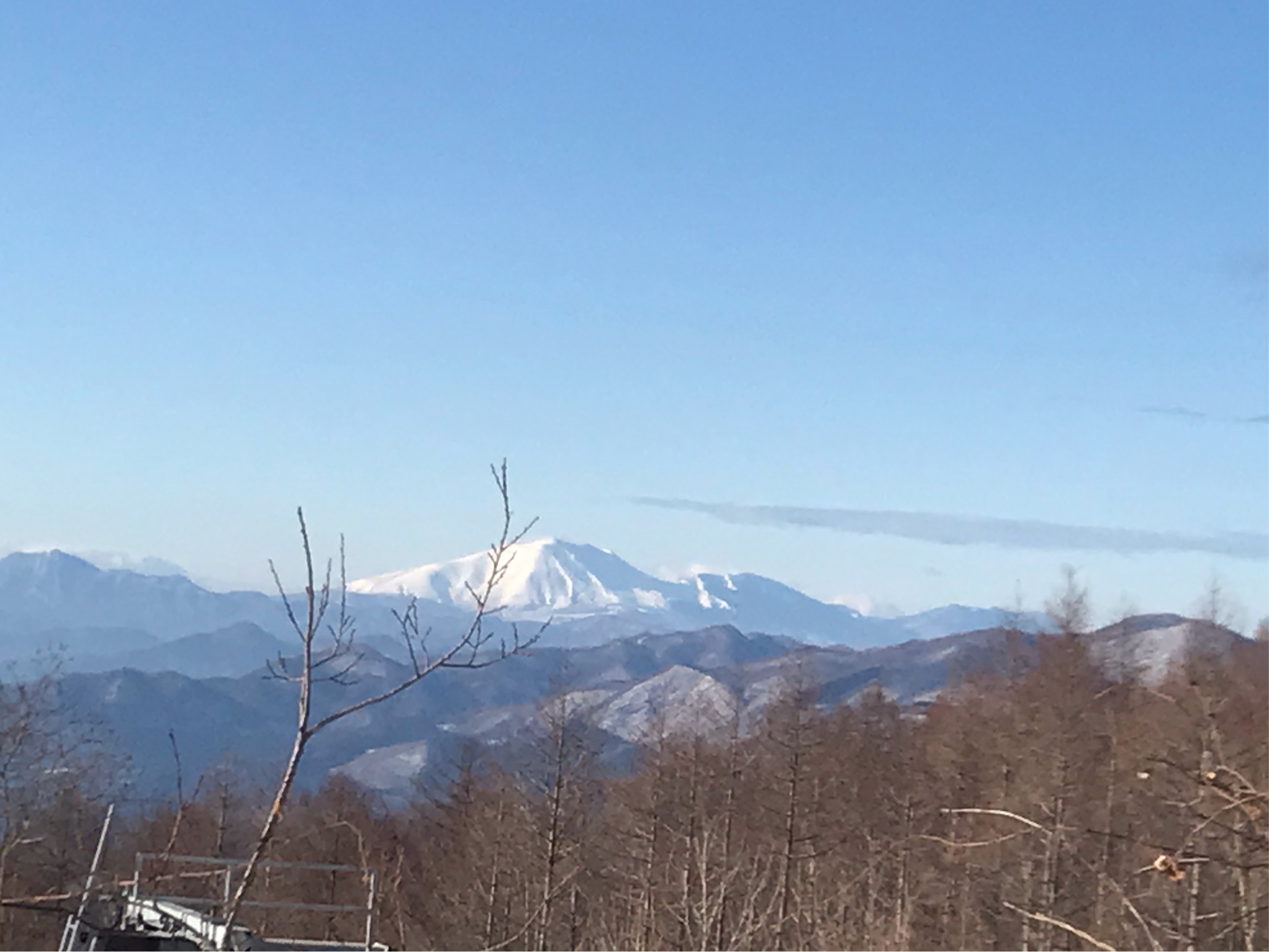 ゲレンデトップ手前のリフト上から綺麗な浅間山を遠望。