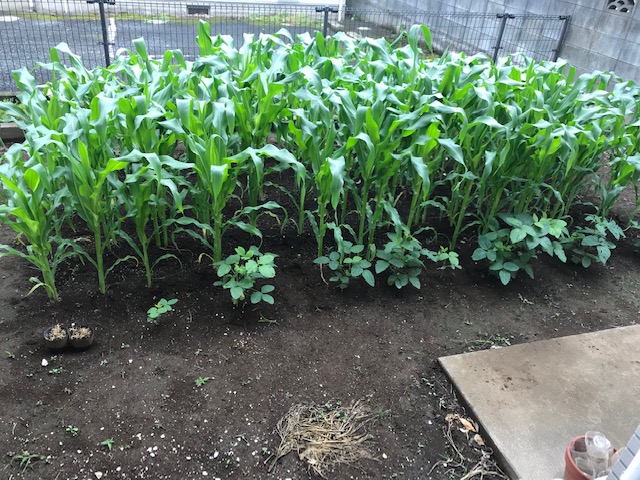 両脇の株の背が低いです。でも、時期をずらして収穫できるのでいいかもしれません。