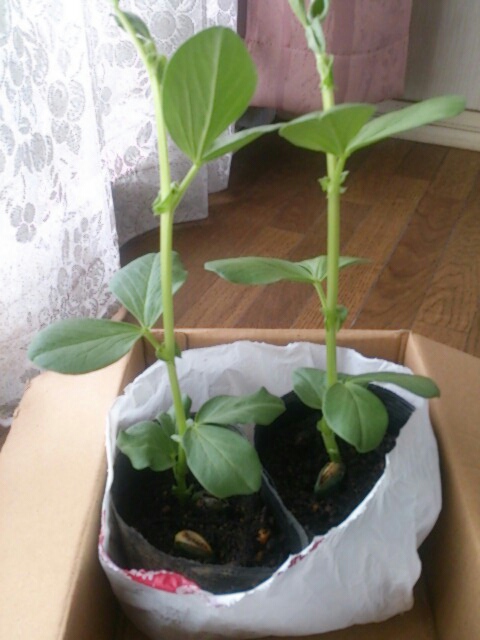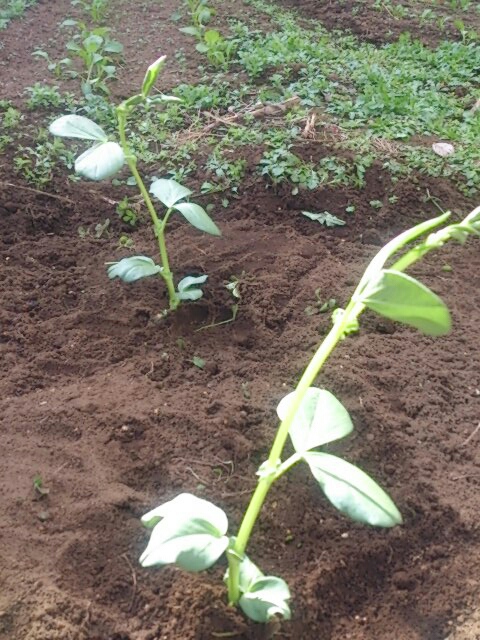 それから会社の営業のオバサンからソラマメの苗を2株もらったので畑を耕したあとに定植しました。
