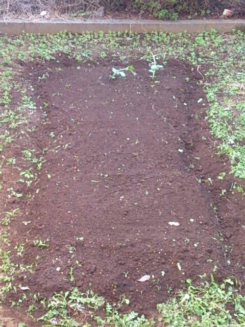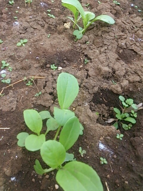奥にソラマメの苗。その手前に小かぶと追加のスティックチンゲン菜の種を蒔きました。果たしてちゃんと発芽してくれるでしょうか。
