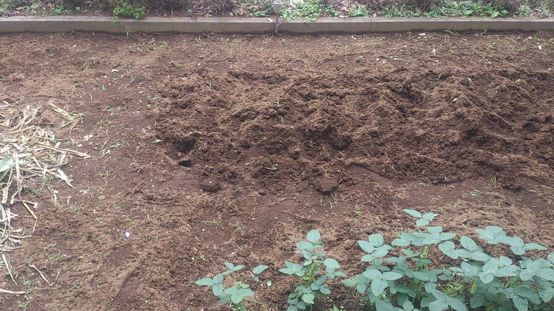 手前に植えてあるのは第2弾の枝豆です。間もなく収穫できそうです。