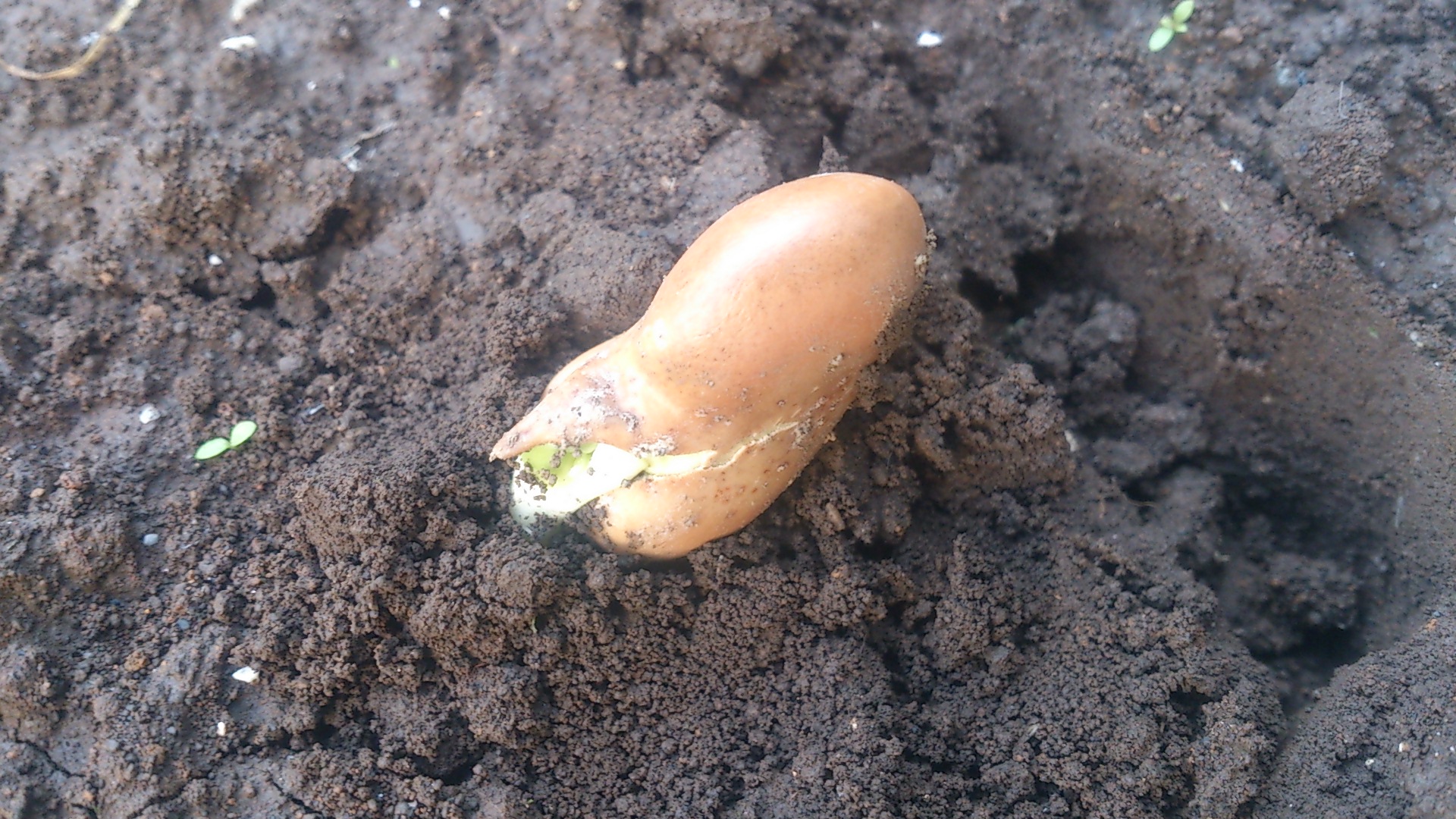 殻を破って小さな芽が出ていました。このあと、大きくなるのでしょうか?
