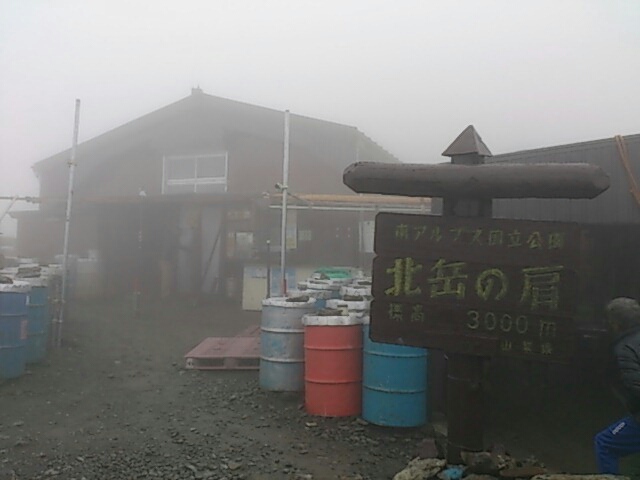 計画では北岳を超え、その先の北岳山荘まで行く予定でしたが、風雨のため山頂手前にある肩の小屋で泊まることにしました。