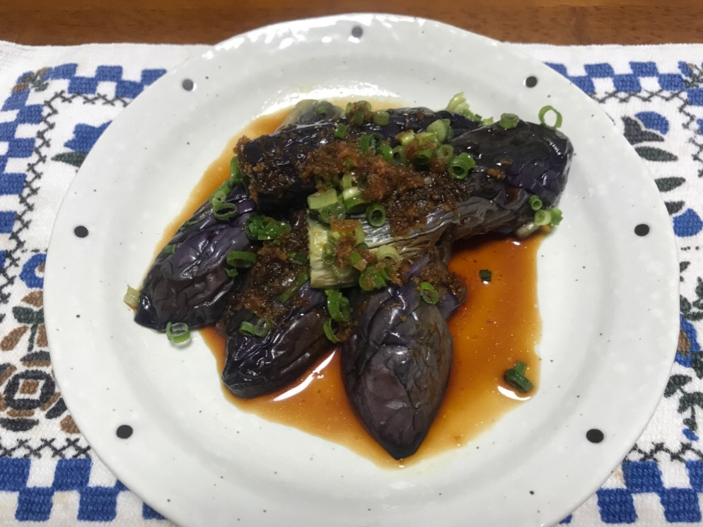 それから、会社のオバさんからおかずを頂きました。茄子の煮浸しです。