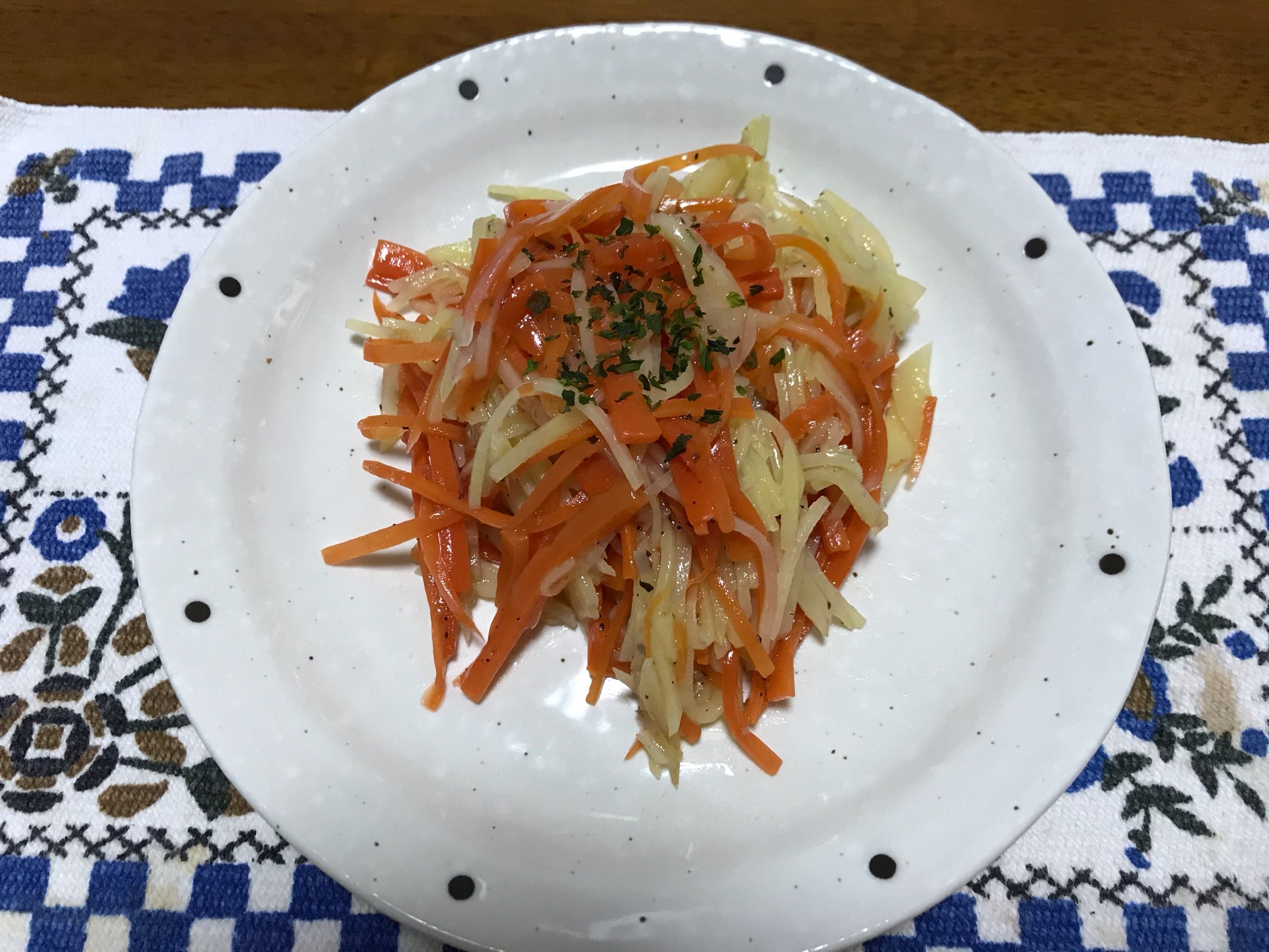 今日はニンジンとポテトのサラダ、イタリアンドレッシング和え。