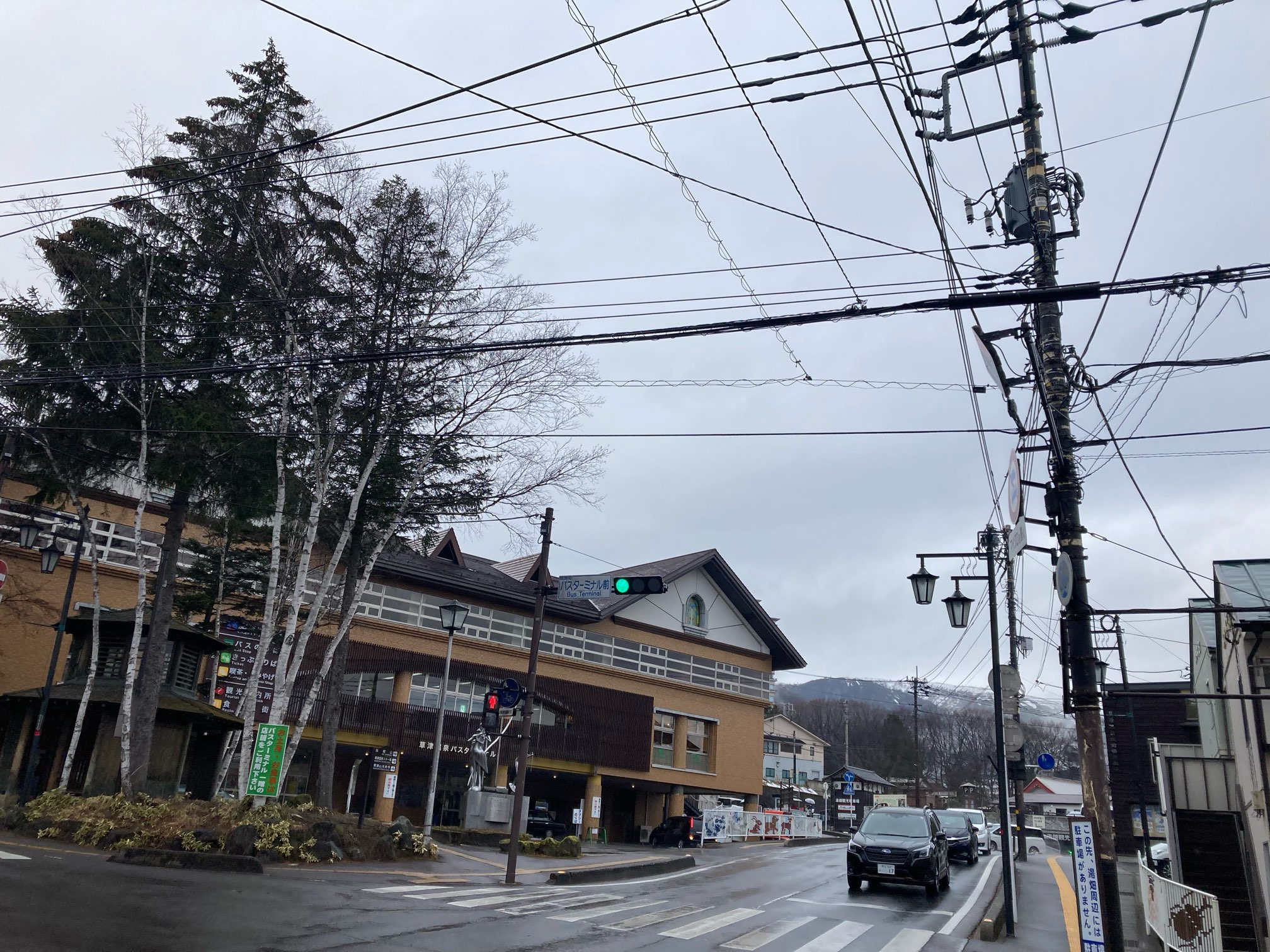 宿の前から白根山を眺めてみるが、雪がぜんぜん無い。それどころか小雨が降っている。これから本格的なスキーシーズンになるのでそろそろ積もって欲しいところである。