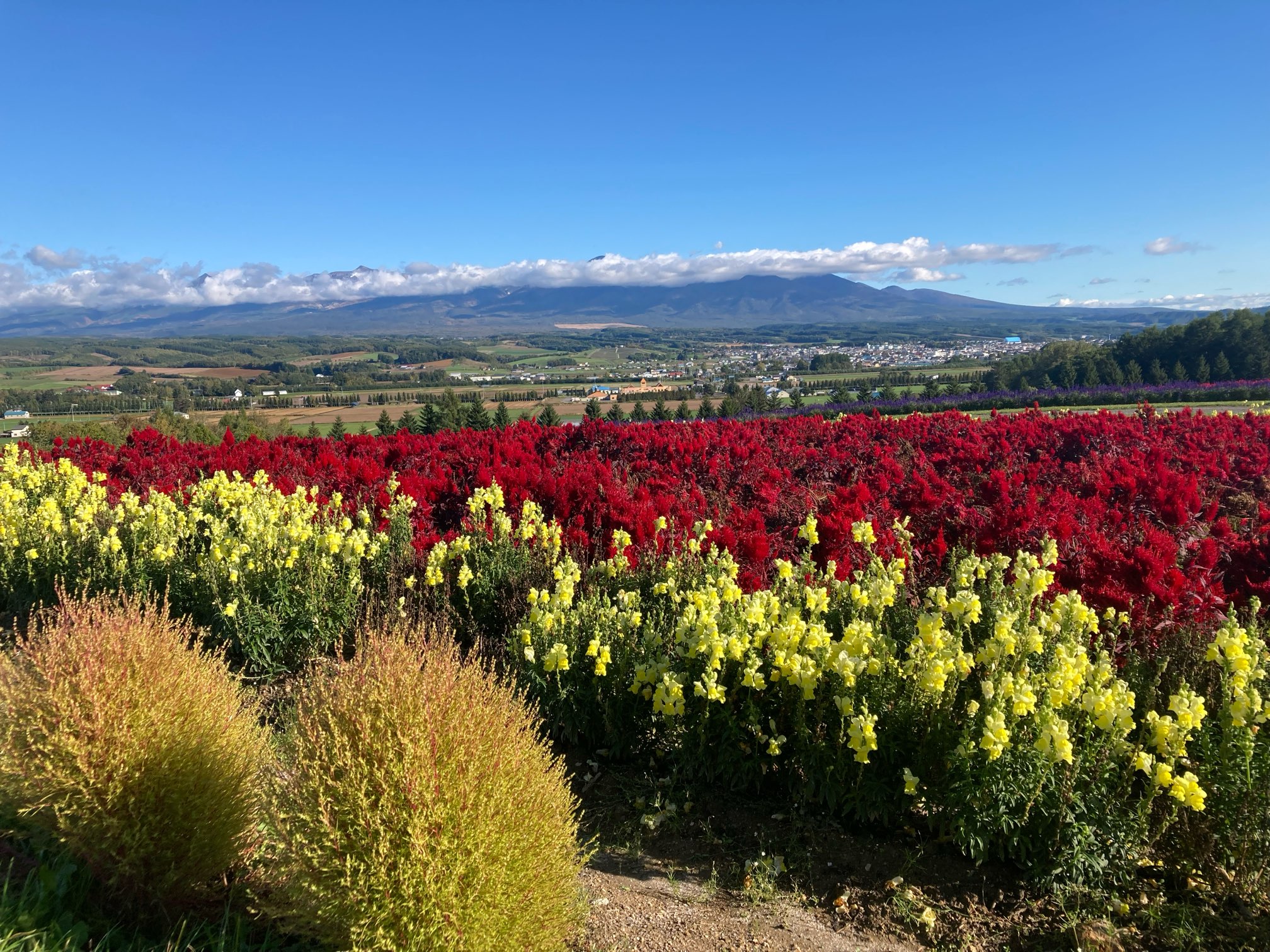 フラワーランドかみふらのに寄ってみた。十勝連山に雲がかかってしまったのが残念。