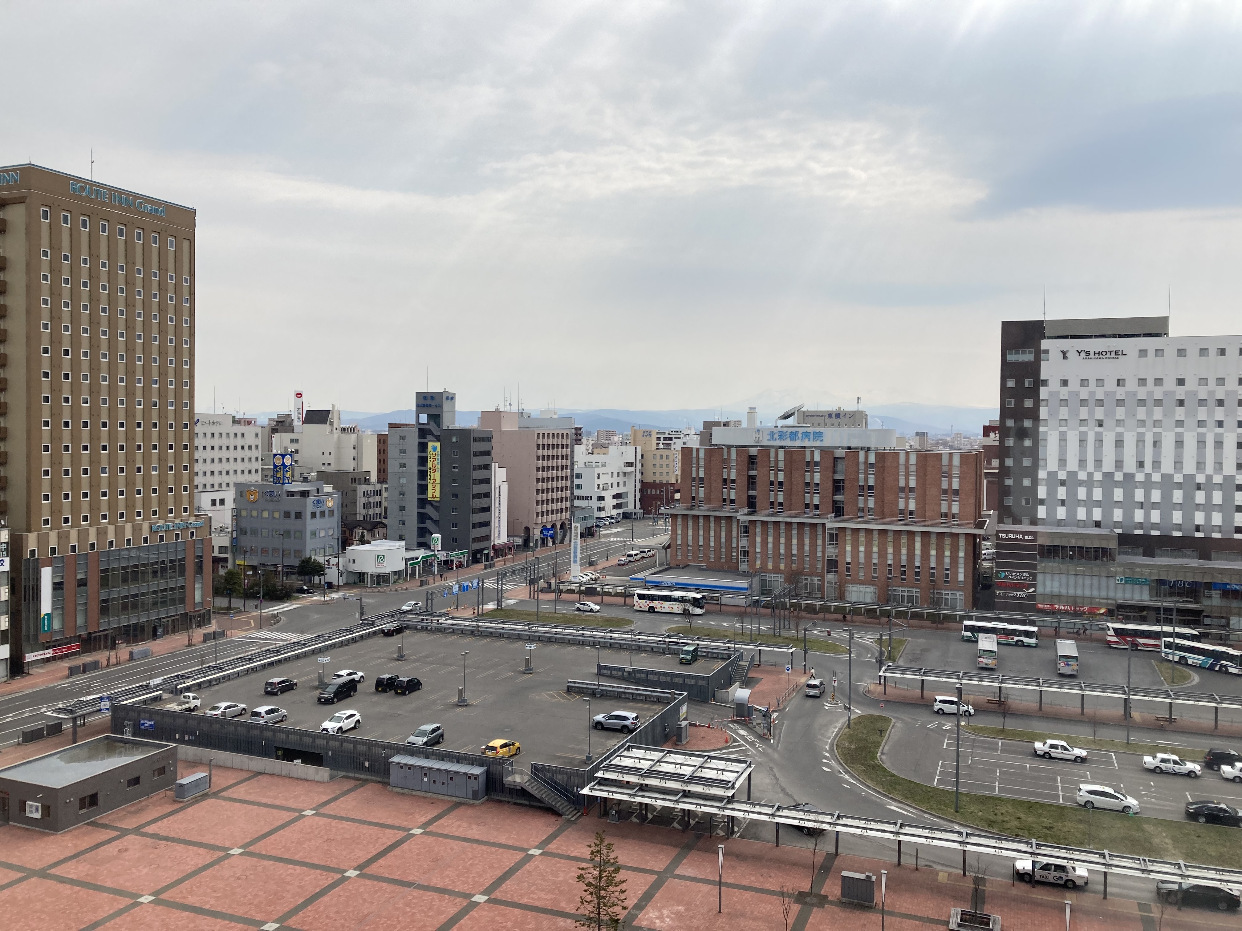 昨日は夕方でも宿からは大雪山や十勝の山々が綺麗に見えたのだが、今日はすっきりしない眺め。