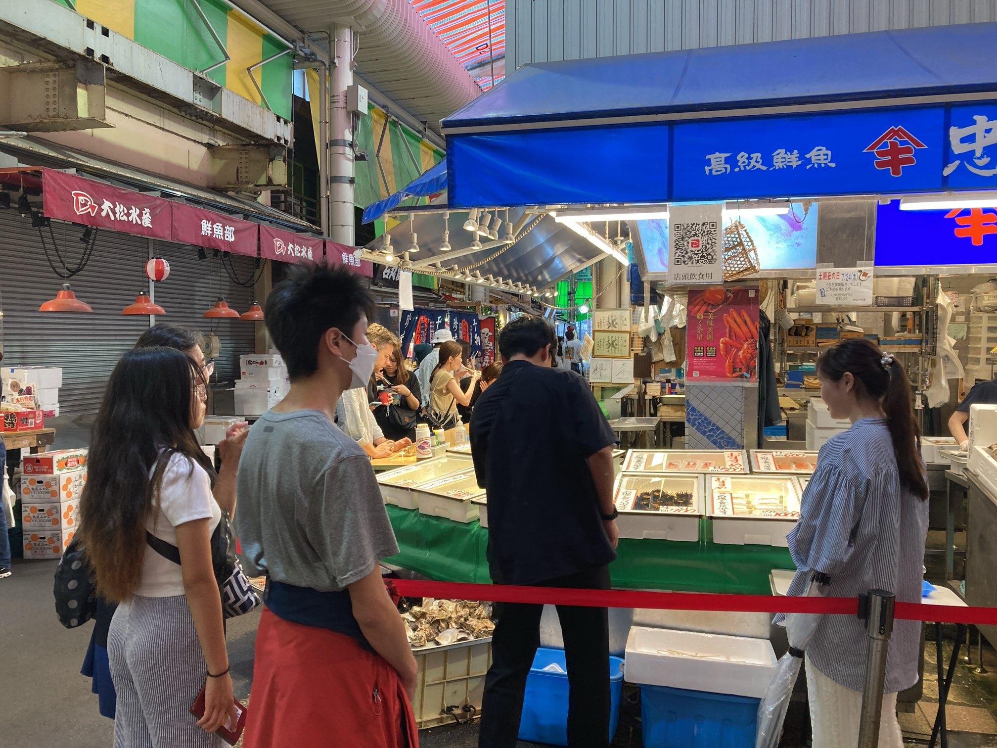 インバウンド人たちがたくさんいた。彼らの多くが海産物の食べ歩き(歩いてはいないが)を喜んでやっていた。普通に見てかなりいい値段なのだが、やはり円安なのだろうか。とても真似できん。