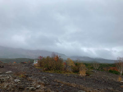 なんとなく十勝岳の登山口である望岳台にやって来た。もちろん十勝岳は見えない。雨がけっこう降っているので車外に出るのも嫌になる。