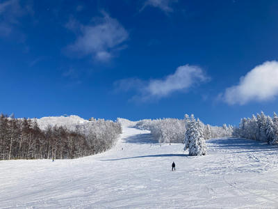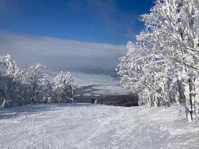 はじめは曇っていたが次第に晴れ間が出てきた。麓から上まで一面、樹氷と霧氷が綺麗。
