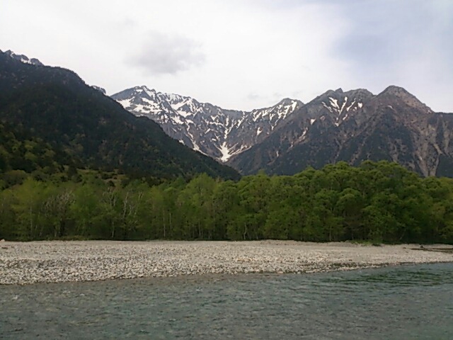 梓川の向こうに穂高連峰が聳えています。上高地を代表する眺めですね。今年の夏には再度登る予定です。待ってろよ~。気合いだぁ~!