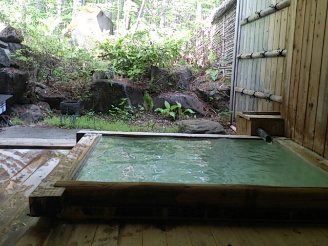 早速、温泉に入りましょ。まずは離れの露天風呂へ。