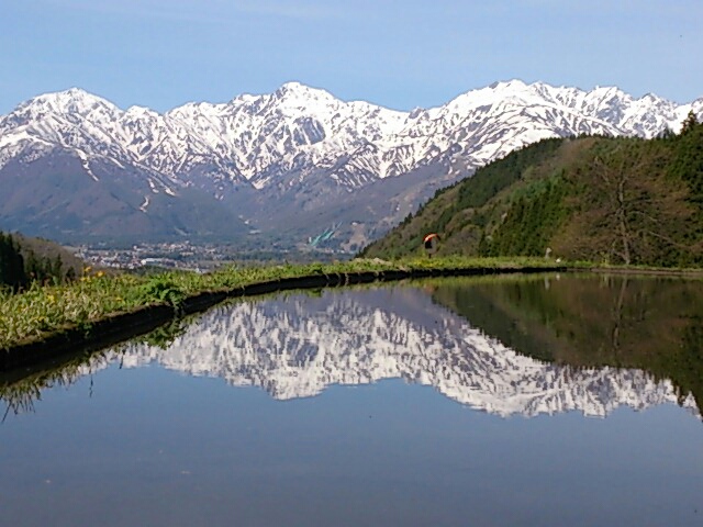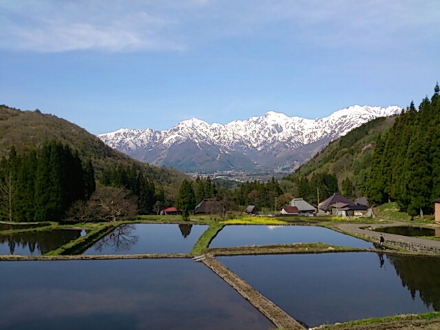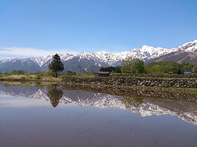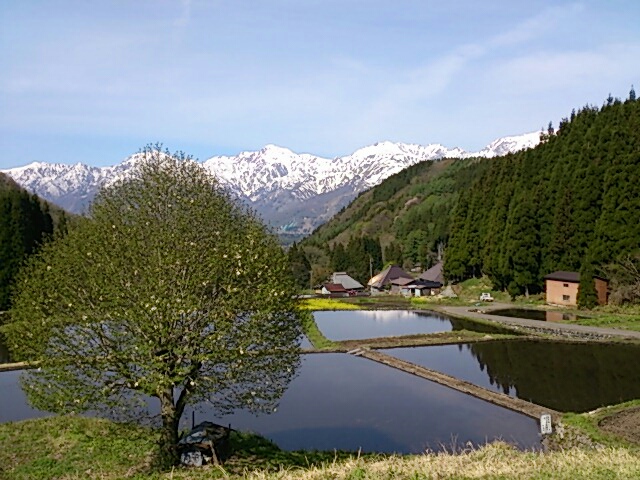 青鬼を象徴する風景と言えばやはりこれでしょう。幾重にも続く棚田とそこに映る銀嶺。