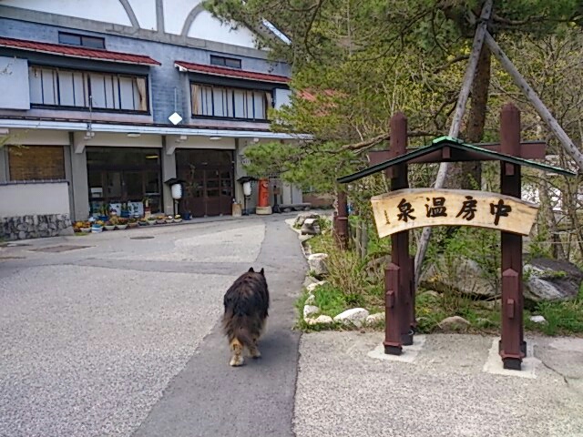 と言うことで中房温泉に到着です。コリーのワンちゃんが出迎えてくれました。