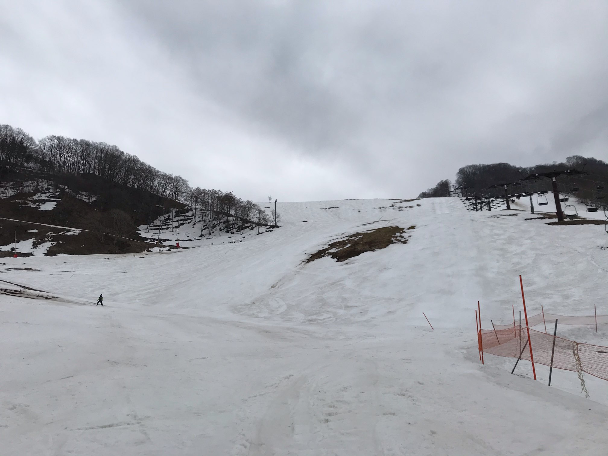上に上がればまだまだ雪はあるが、斜面はだいぶ緩くなってしまった。