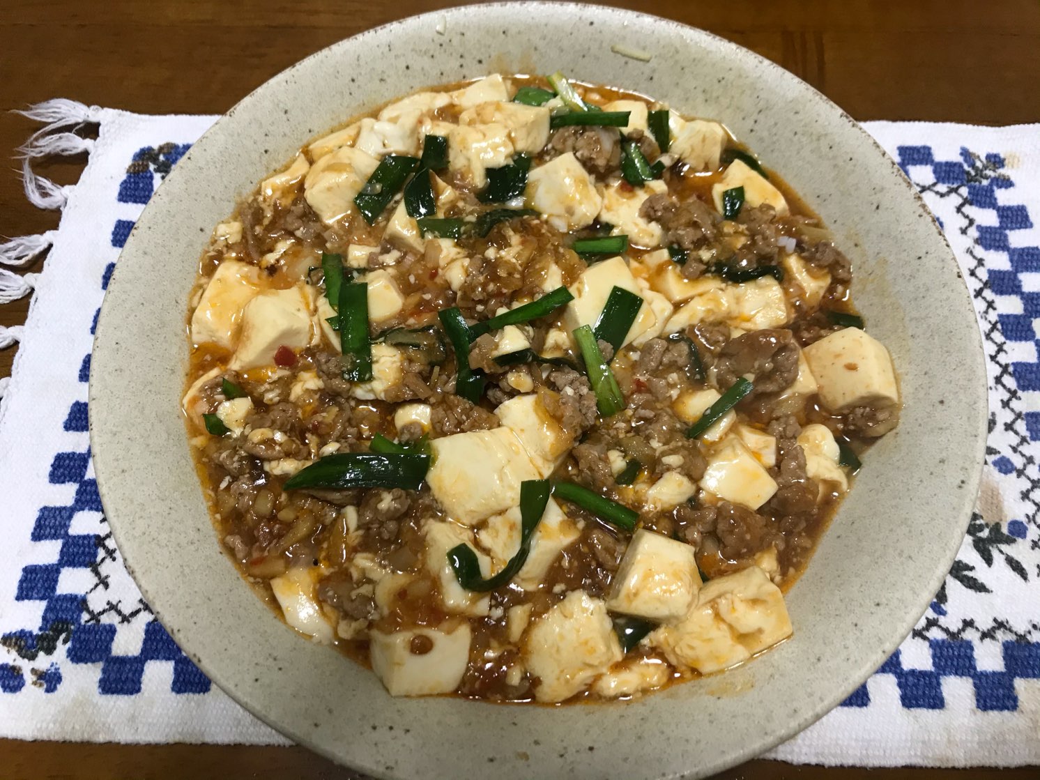 冷蔵庫に残り物の豚ひき肉があったので、今日は麻婆豆腐を作ってみた。久しぶり。