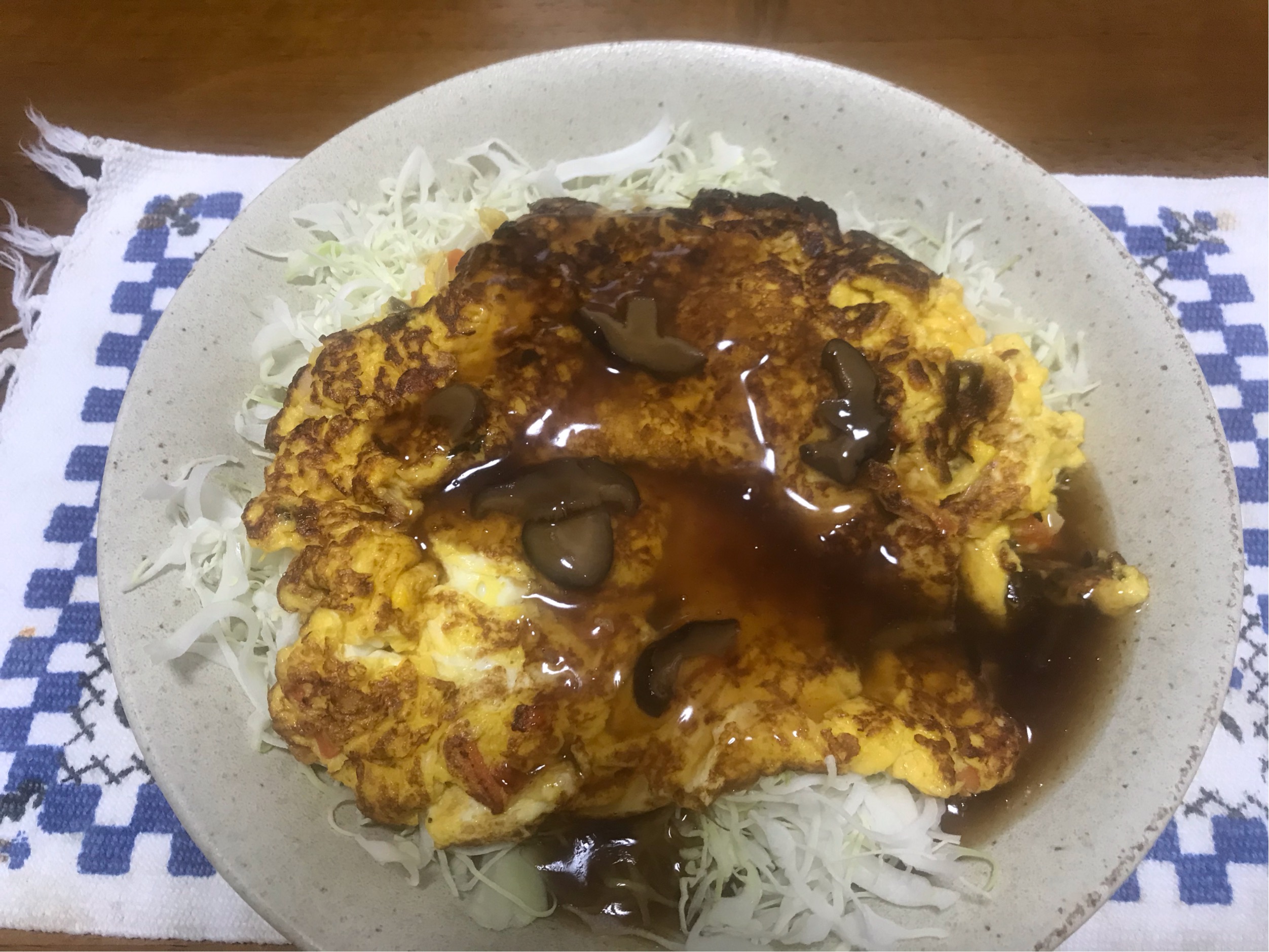 フライパンが古いので卵が少し焦げてしまったが、これもまた一興か。