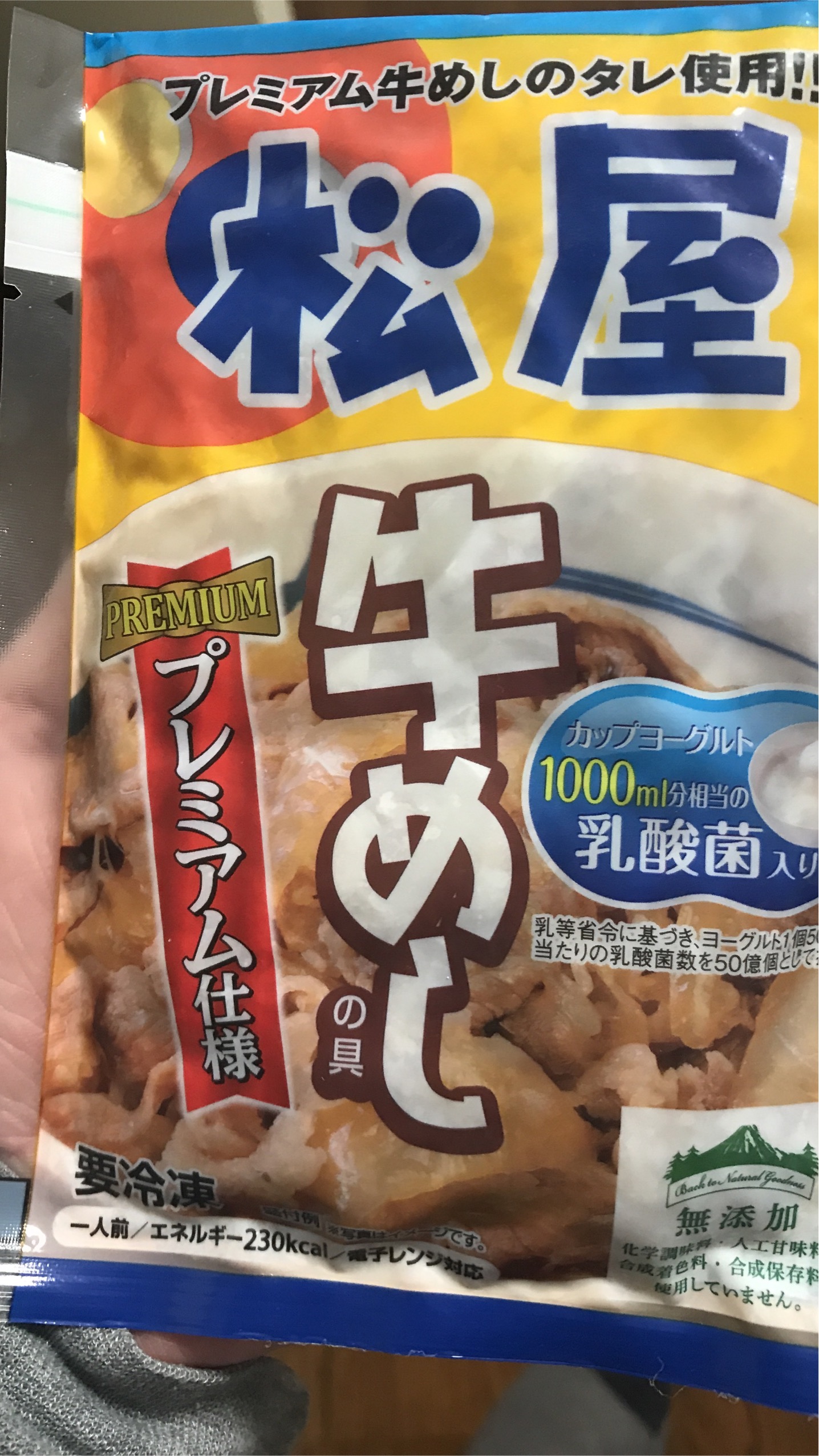 牛丼チェーン店の冷凍パックで、レンジでチンか熱湯で温めるのだ。