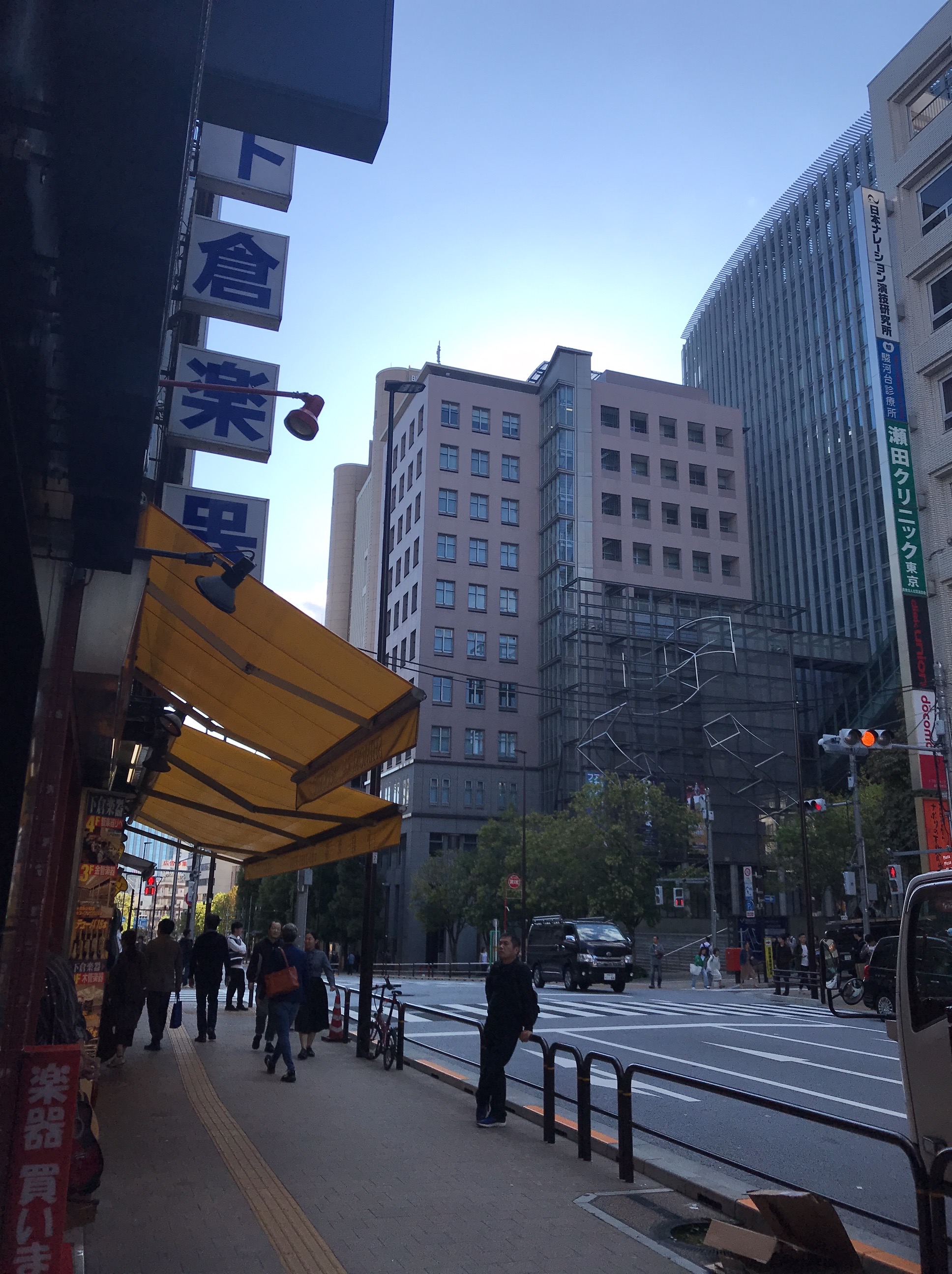 靖国通りまで下っていくあいだ、楽器屋がずらりと立ち並ぶ。