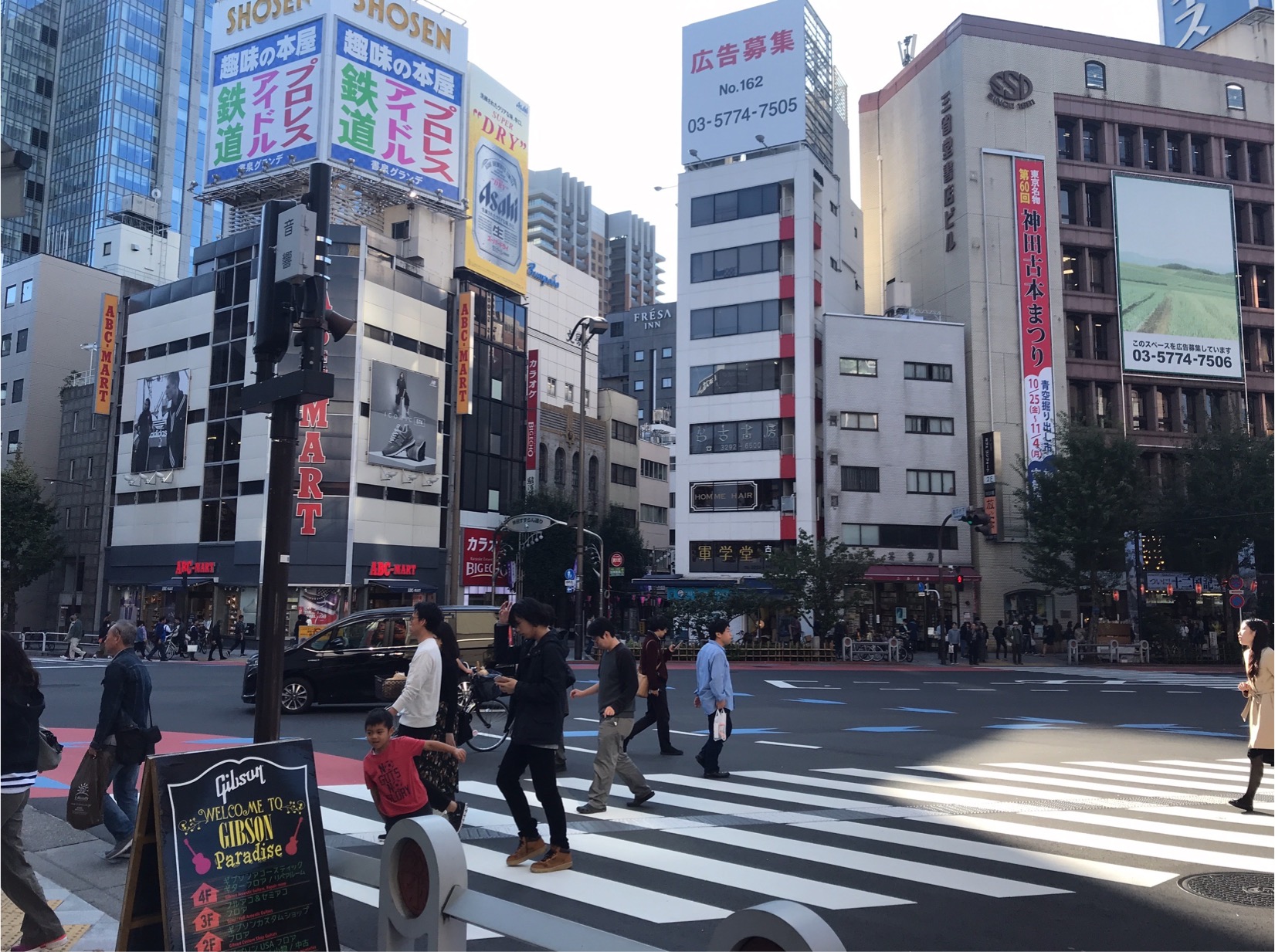おなじみの駿河台下の交差点。なかなか賑わっている。