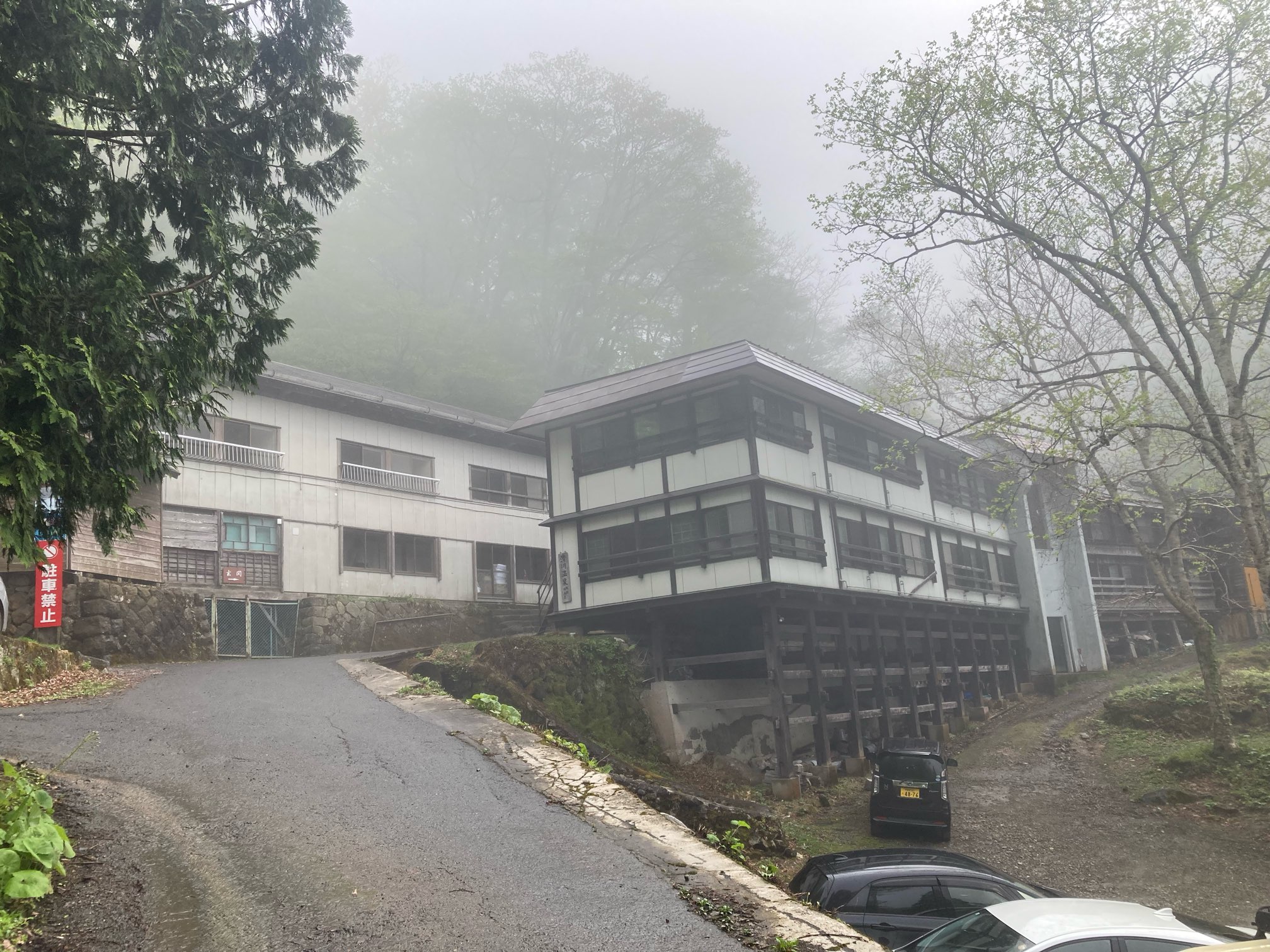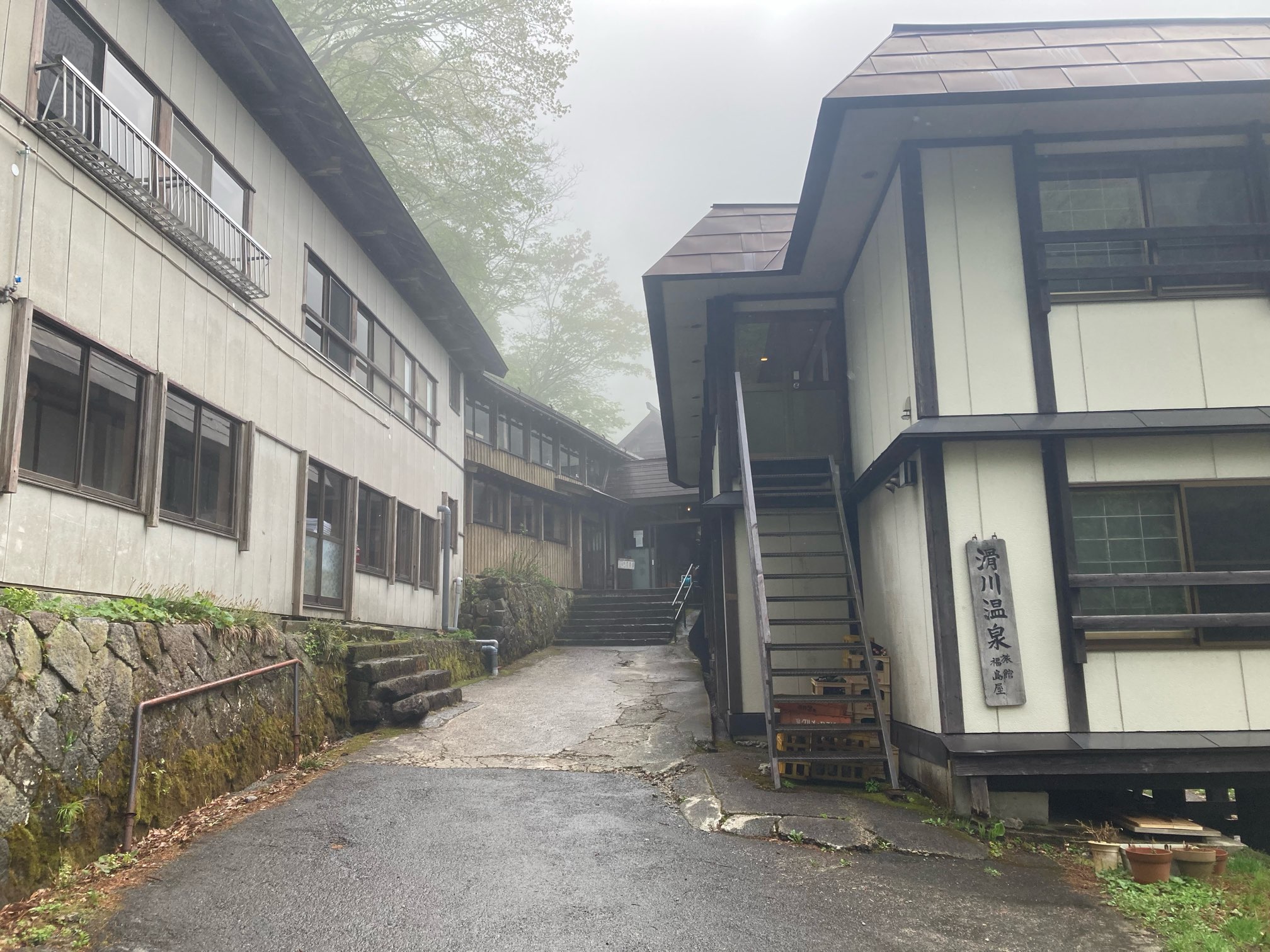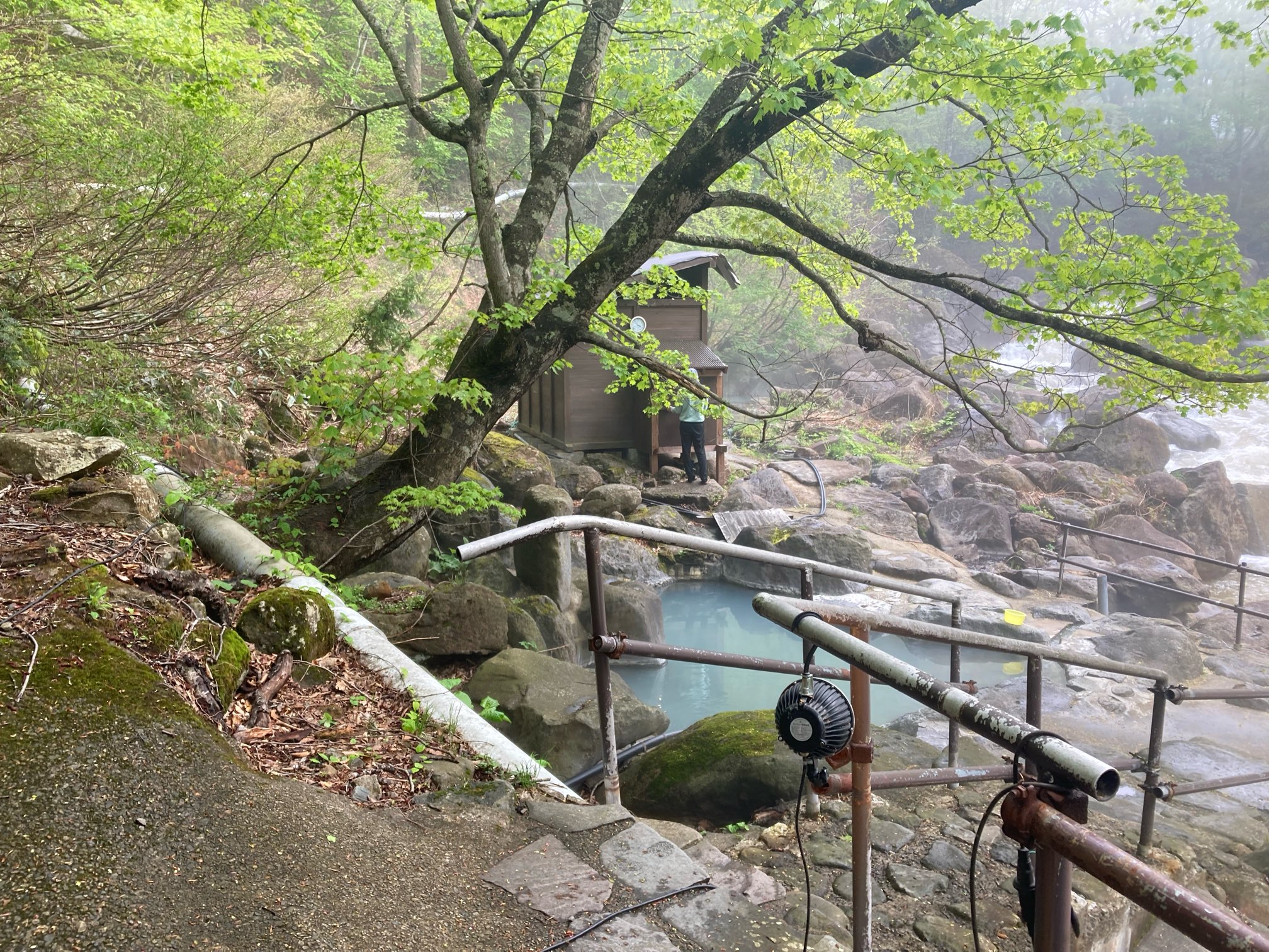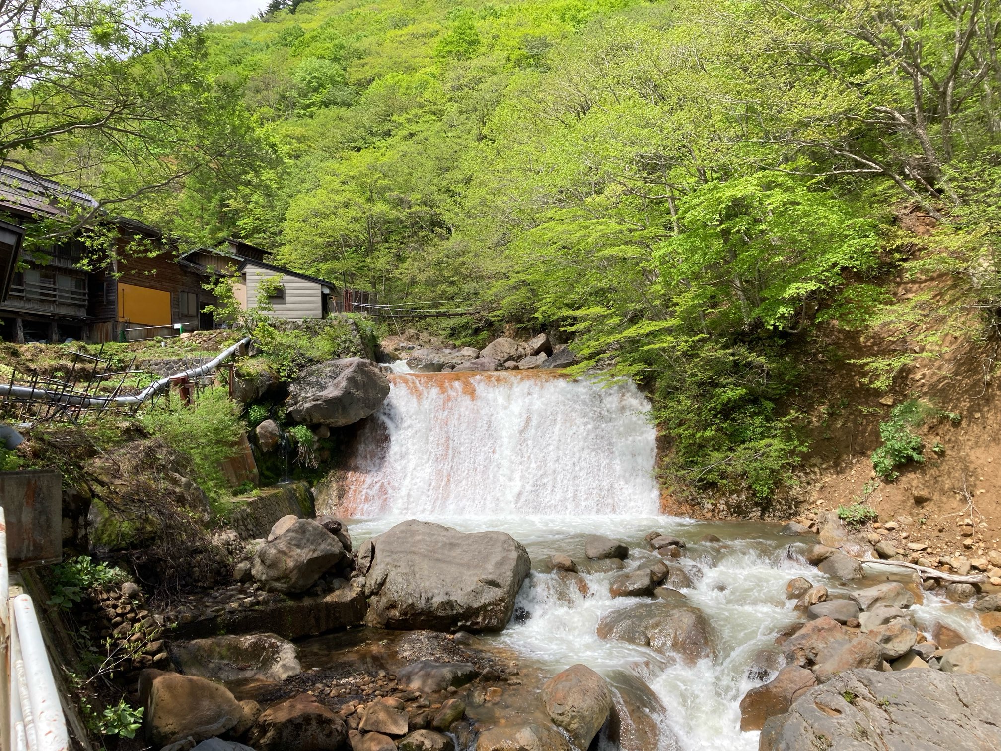 宿の前を流れる川。滝みたいのが凄い轟音をたてている。ゴォーゴォー!!