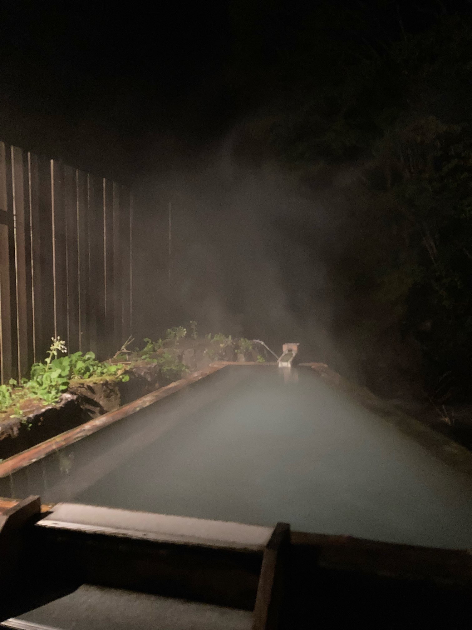 一服してから檜の露天風呂へ行ったが、タイミング悪く男女二人組に先に入られてしまったので内湯の大浴場にさっと入って部屋を出るまでゴロゴロしている。このまま帰ろうと思ったが、先ほどの風呂を見に行ったら空いていたので最後にひとっ風呂いただくことにした。