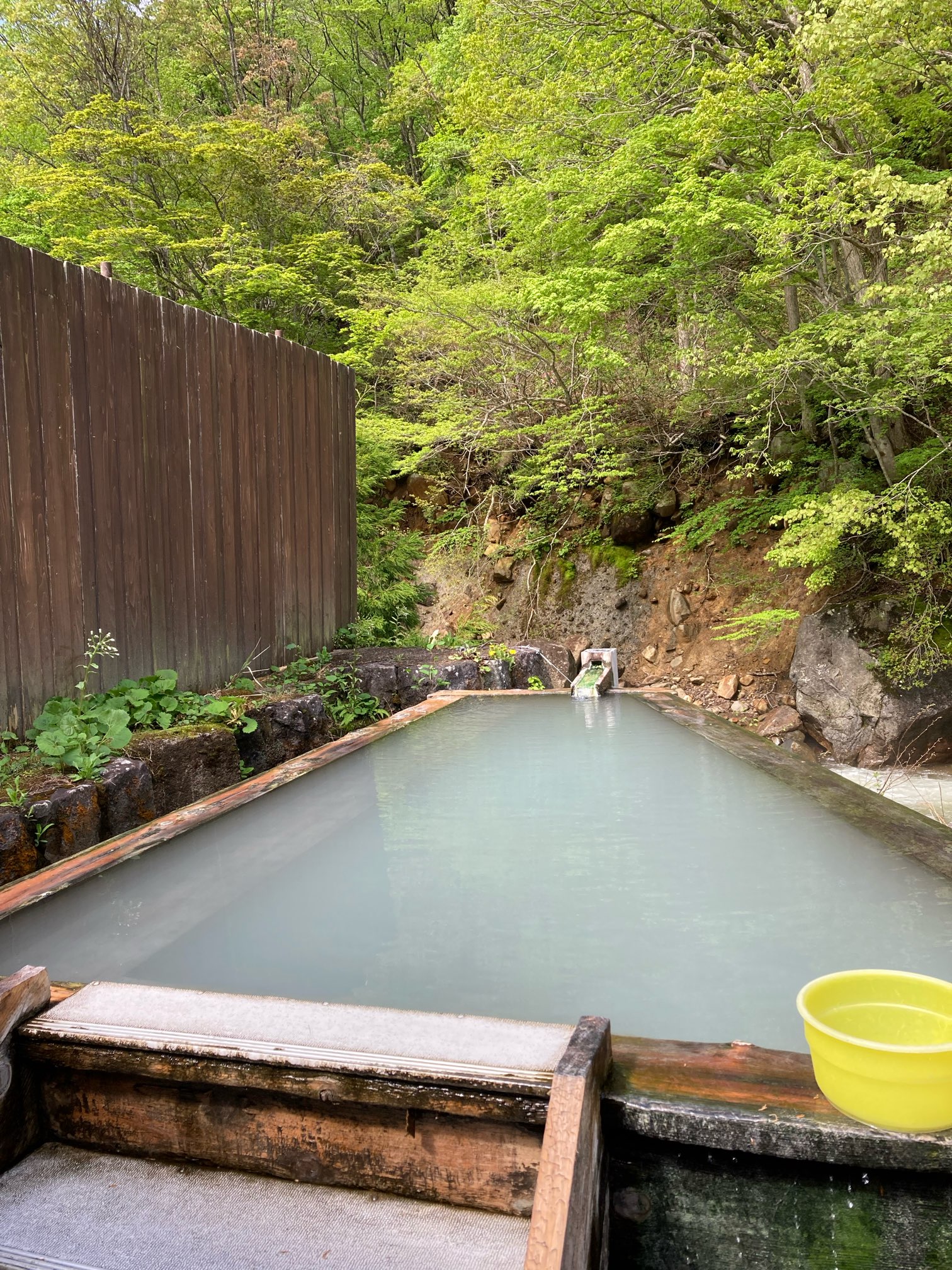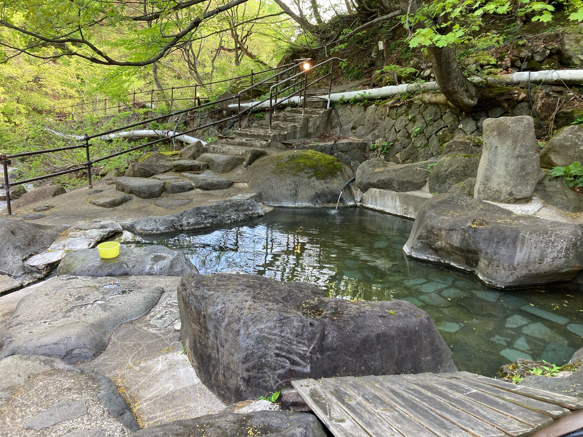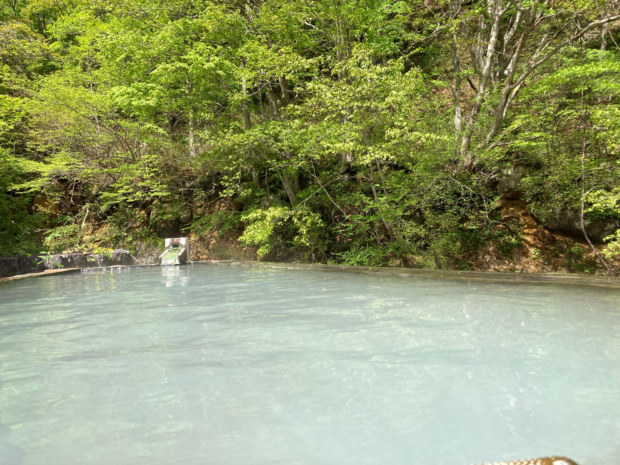 少しぬるめの湯でいつまでも入っていられる。でも間も無く朝メシの時間なのだ。。。