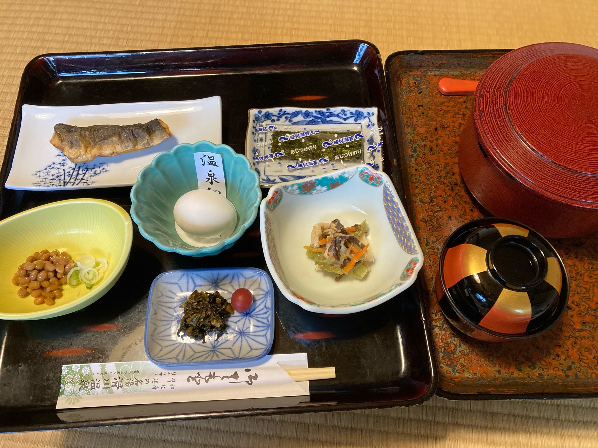 山の宿の朝メシは美味い。