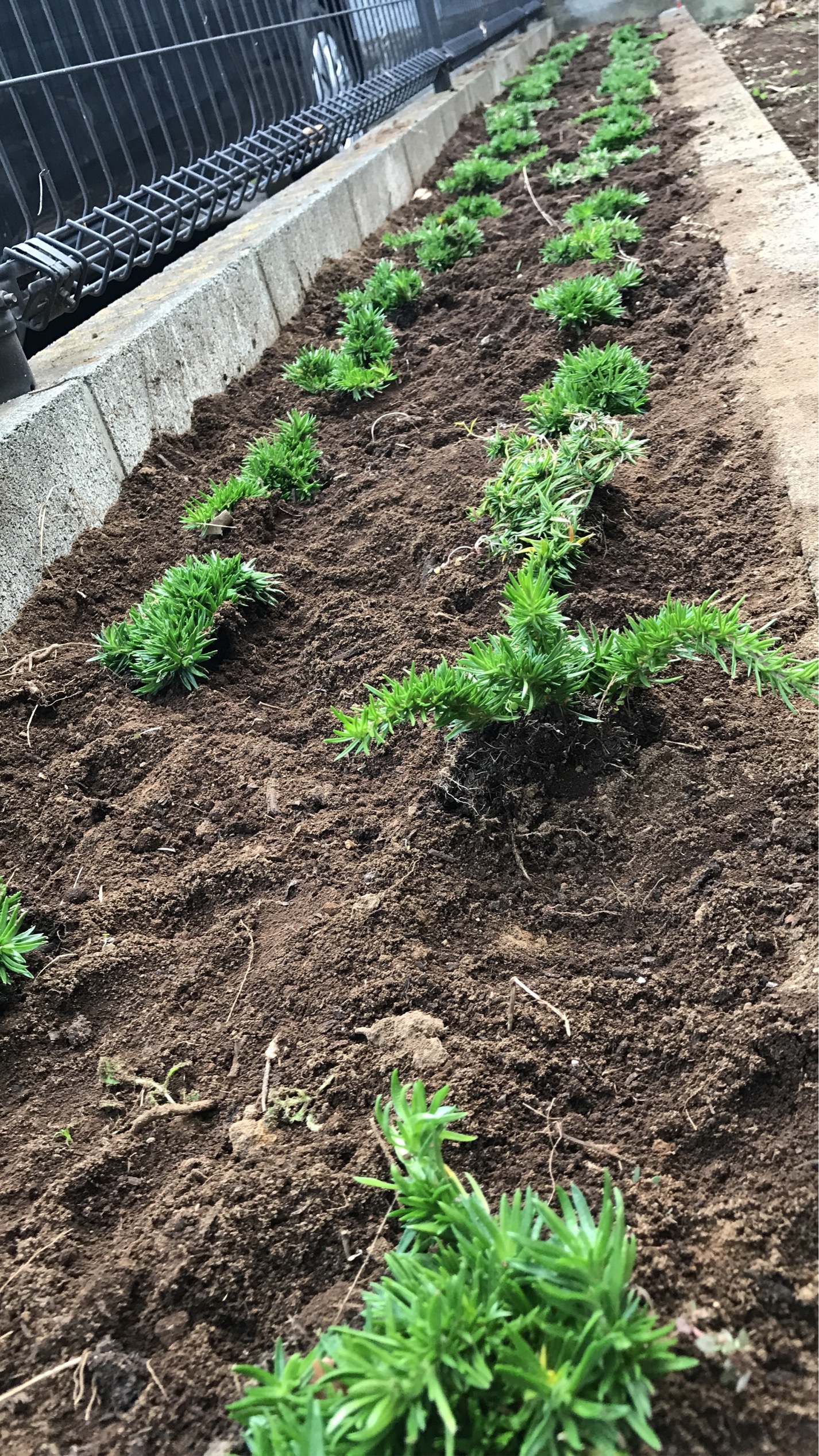それから、庭の奥にある、以前までツツジが植えてあった花壇をきれいにしておいたので、ここを何かに使おうと思っていましたが、そこに芝桜を植え付けました。初めてなのでどうなるか分かりませんが、上手くいけば来年の春には綺麗な花がきっと咲いてくれることでしょう。