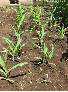 2回目に蒔いたトウモロコシは大きいもので30cm近くになりました
