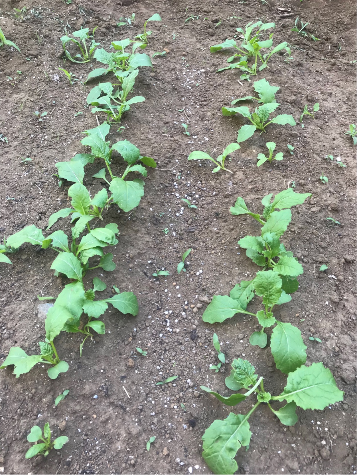 トウモロコシはなかなか良い感じです。種を蒔いてから24日目で、大きい株は15㎝を超えています。この後は成長が早まる時期になります。最近は雨ばかりですが、週明けからは天気が良さそうですので、グングン大きくなってもらいたいです。