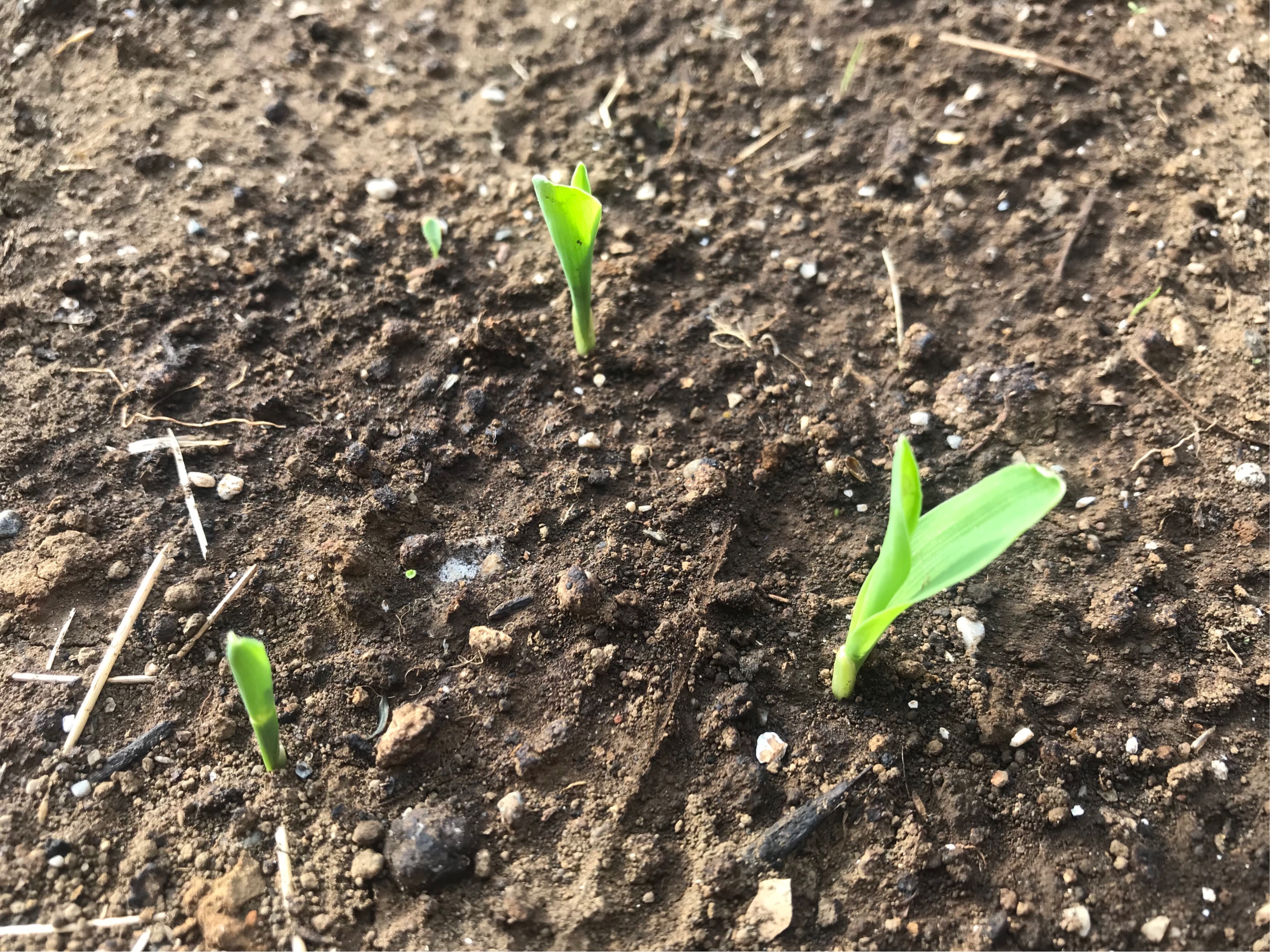 先週、蒔いたトウモロコシの種が昨日の朝見てみたら、芽を出していました。予定通り1週間での発芽でした。まずは、ホッとしましたねっ。発芽率もまずまずです。