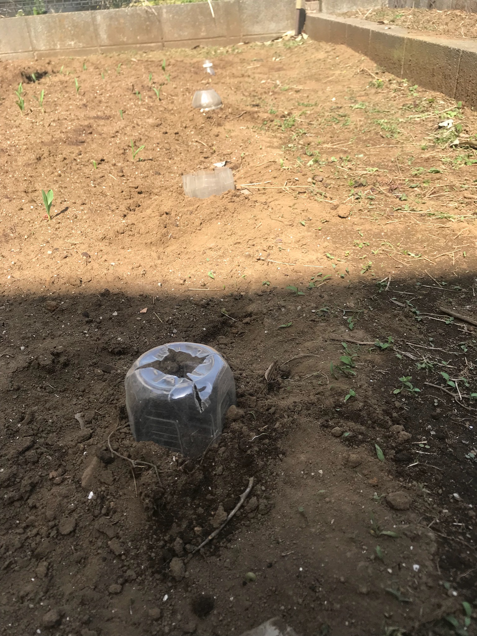 今回は鳩野郎に食われないように、ペットボトルでカバーしました。これで安心。