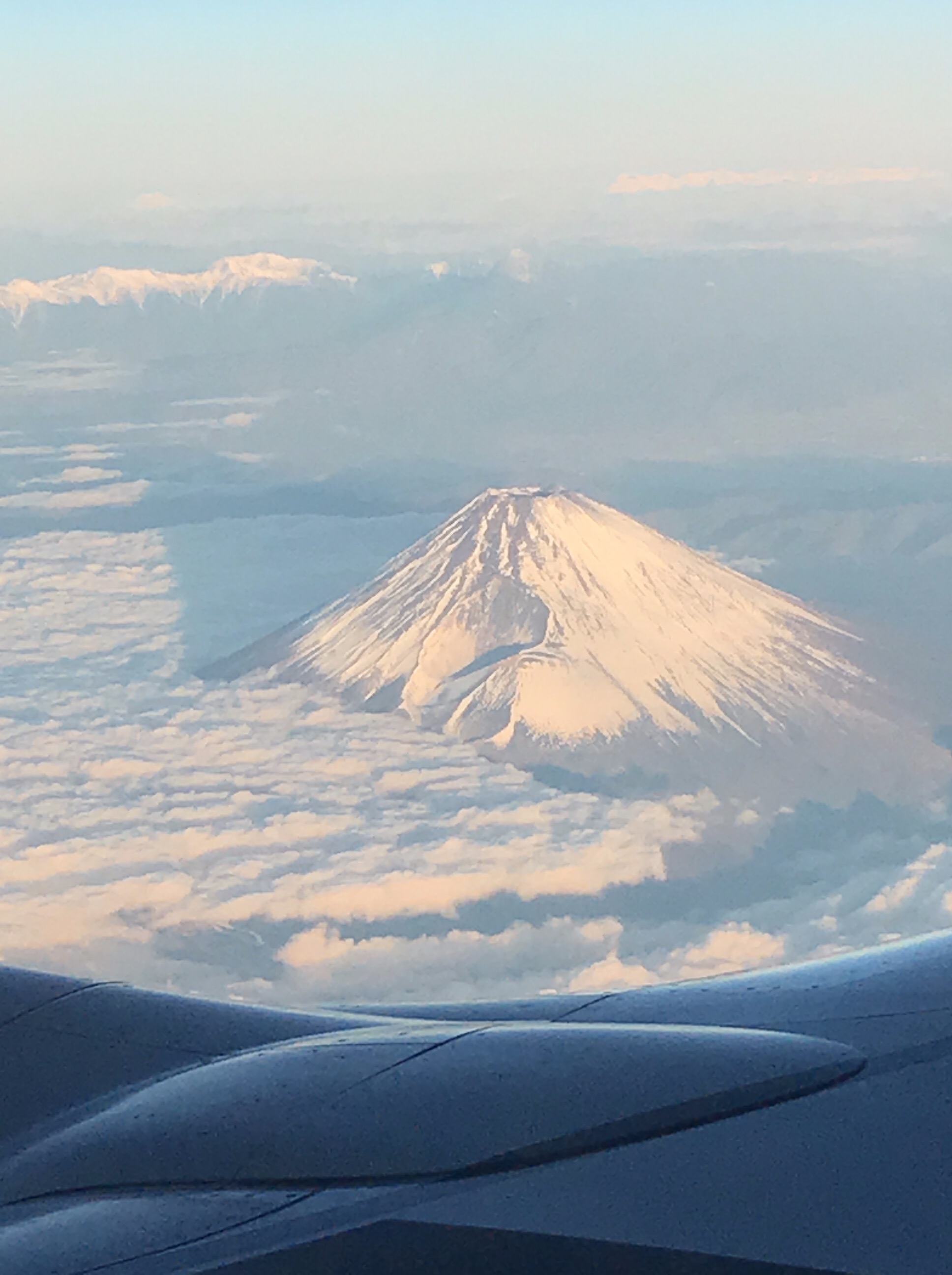 機内からの富士山の眺め。南、中央、北アまで見えました。