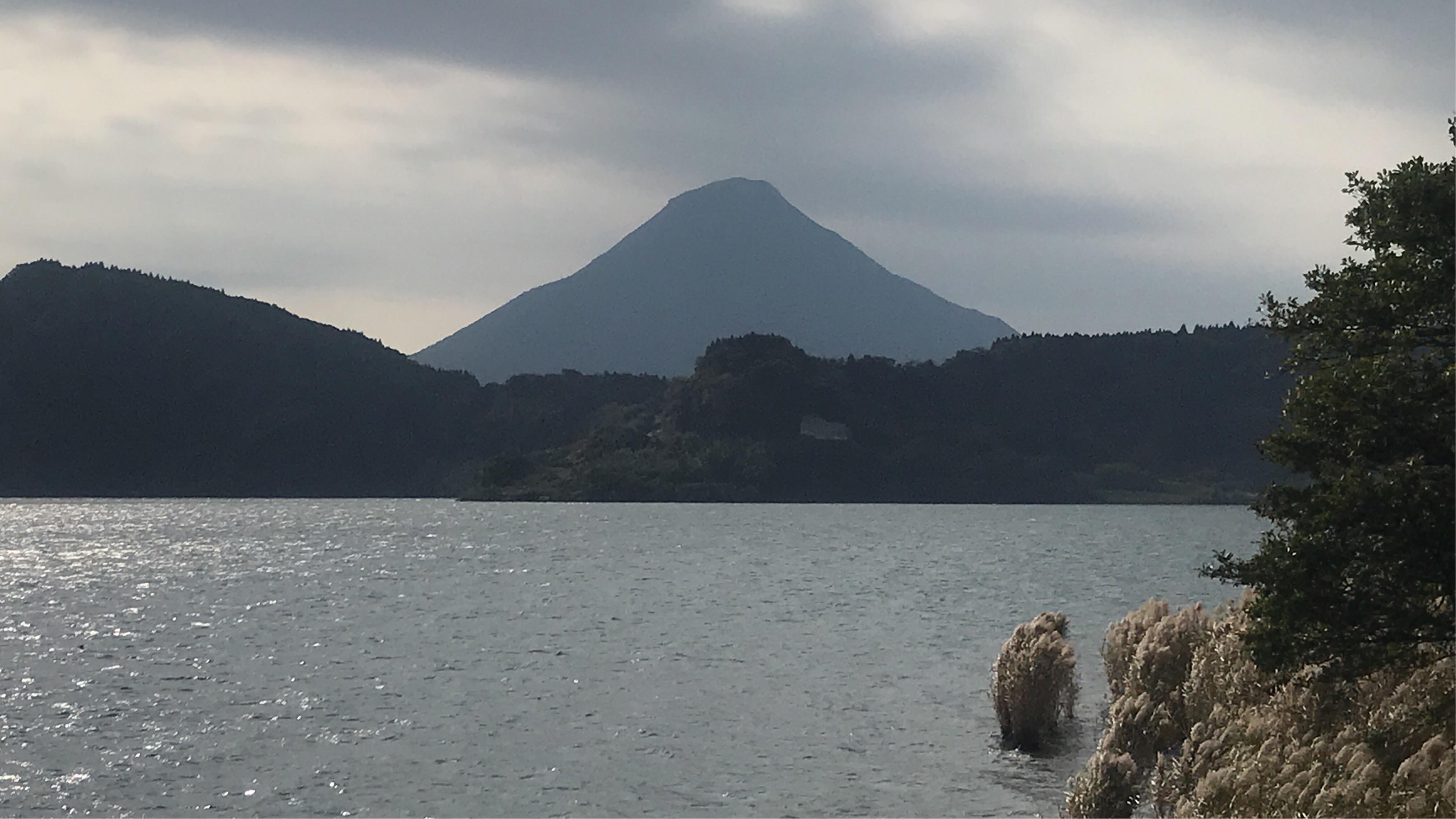 空港からレンタカーで指宿までやって来ました。池田湖の向こうに薩摩富士こと開聞岳が聳えています。