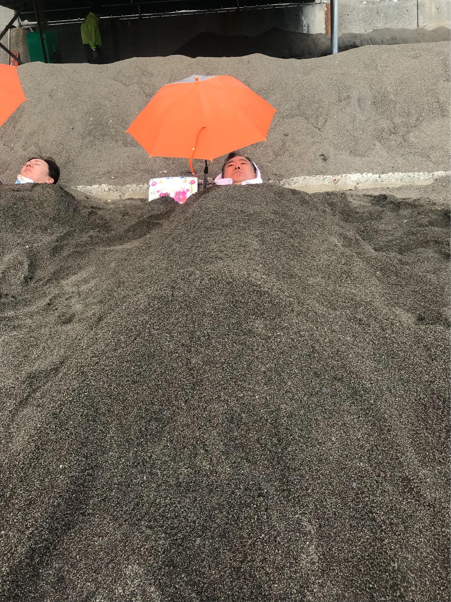 一度やってみたかった指宿の砂むし風呂を体験してみました。15分も埋まっていると汗ダラダラ状態で、想像以上に熱かったです。