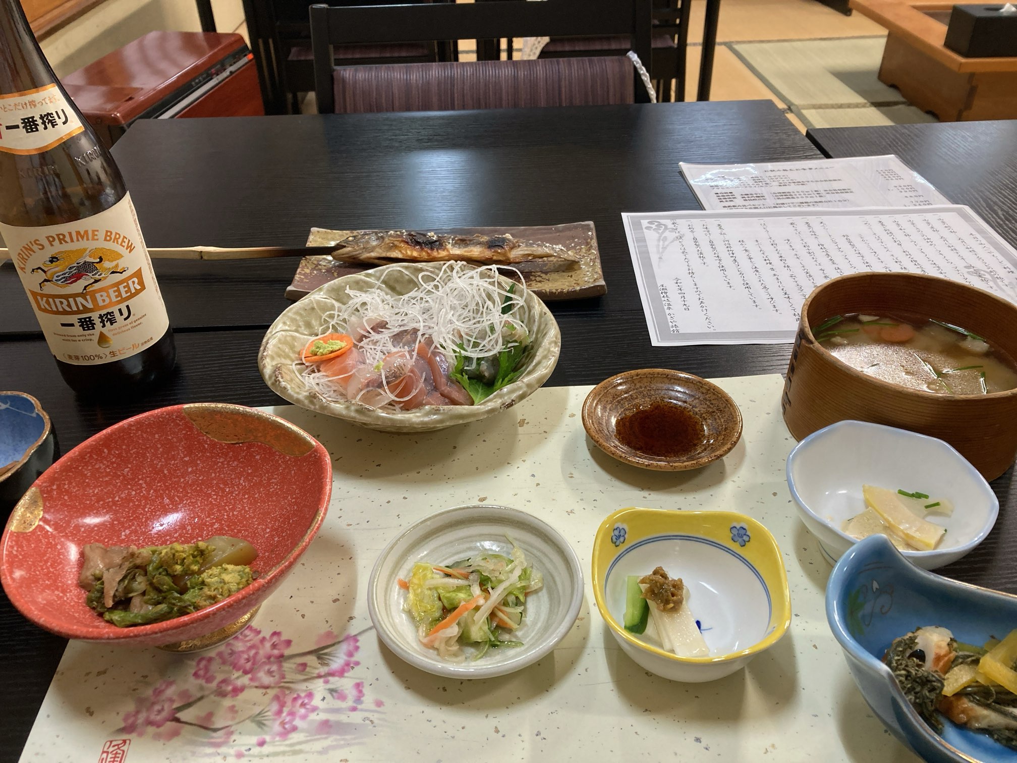 何はともあれ温泉である。ザブ〜ンッ。食事前までに3回風呂に入ったら。