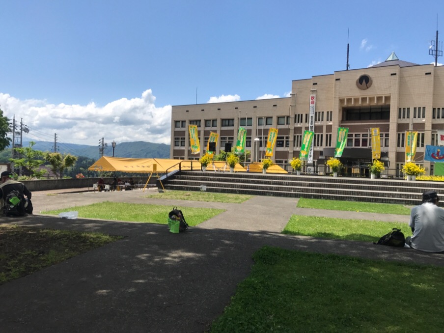 野沢温泉村役場から間もなく出発です。