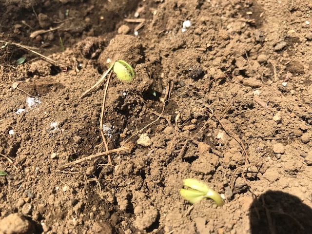 里芋は葉っぱが大きくなるのですが、今の畑では3つの種芋を埋める場所がありません。とりあえず、枝豆の脇のスペースを耕して、そこに埋めてみました。うまく育ってくれれば秋には収穫できるでしょう。