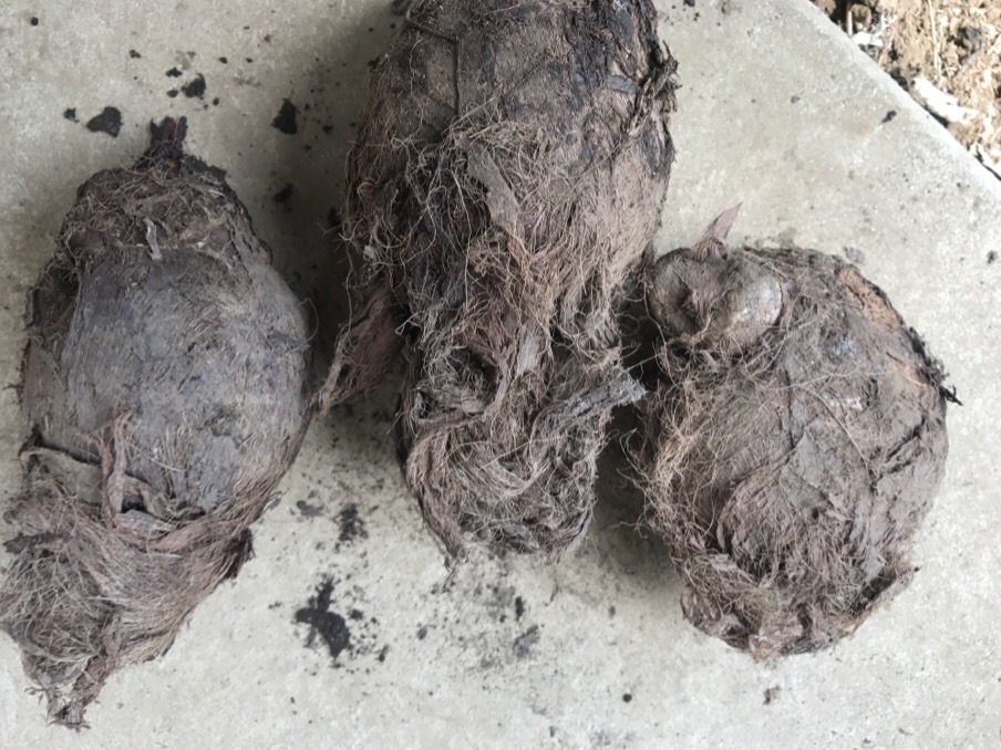 先日、職場のオジさんから里芋の種芋を頂いたので蒔いて(埋めて)みました。