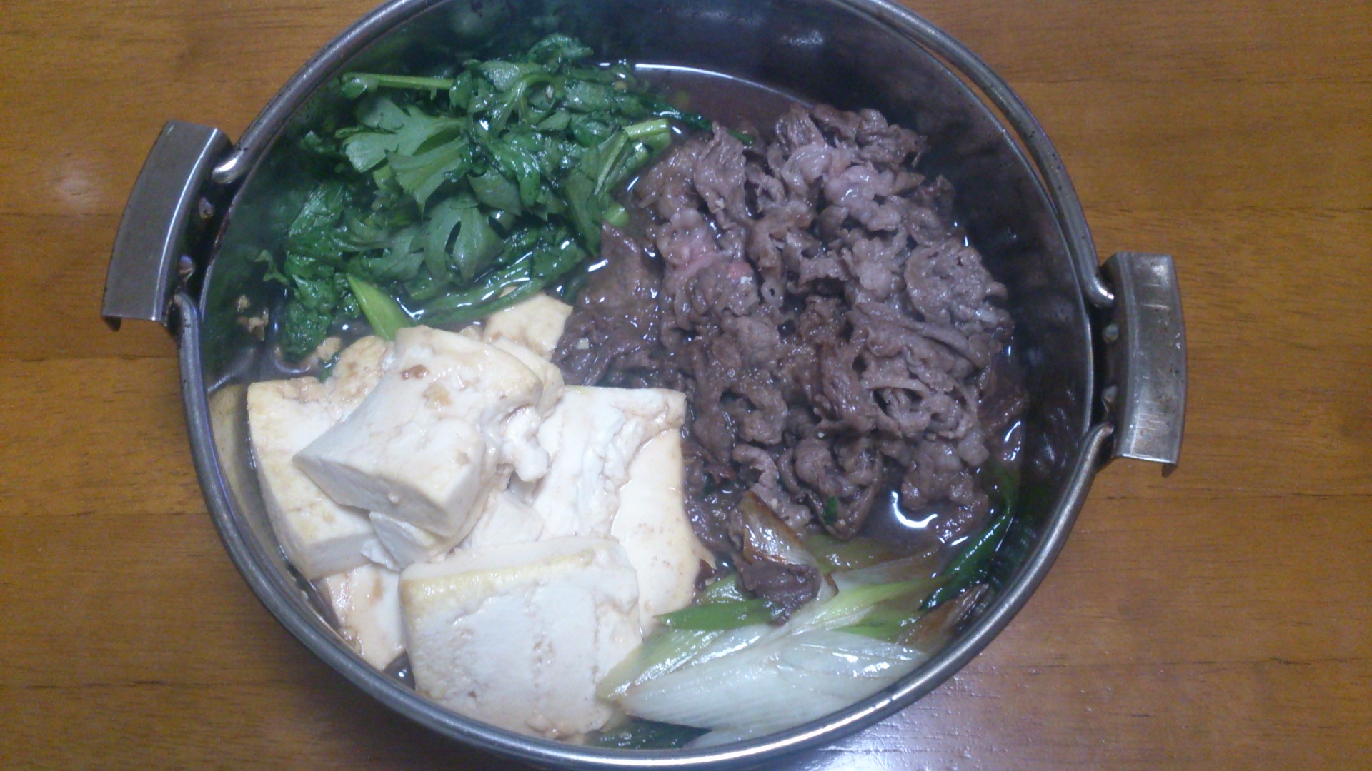 冷蔵庫の中に豆腐とネギと卵があったので、すき焼きを作ってみました。