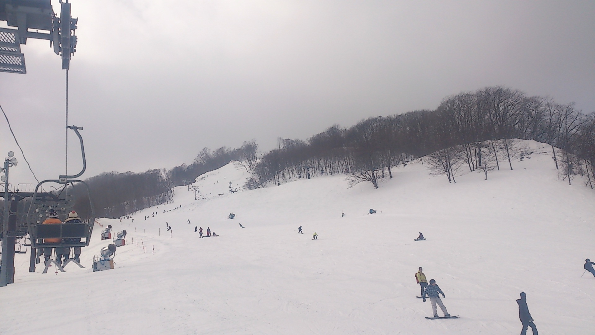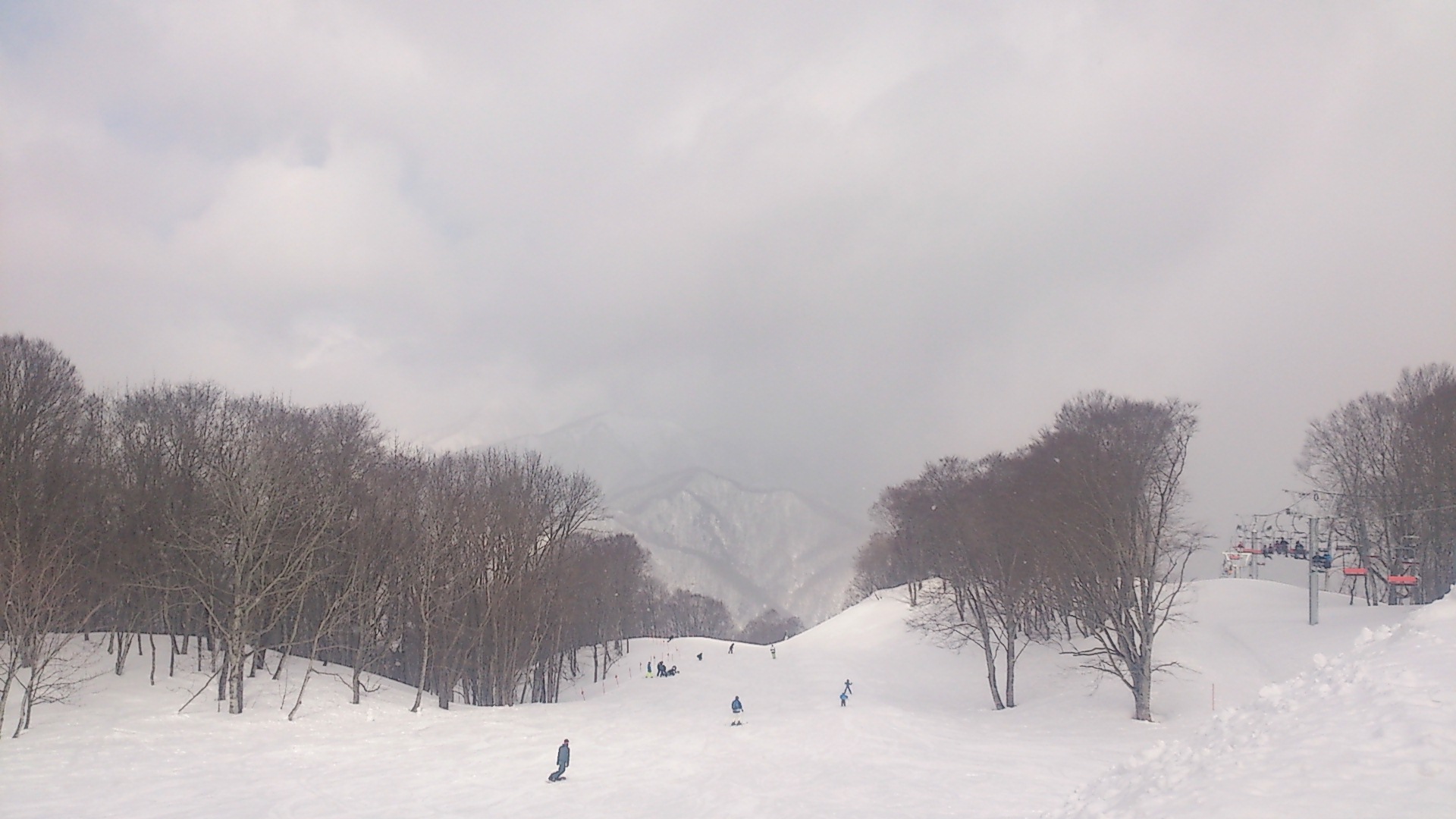 曇りで小雪が舞うなか、3時間ほど滑って早めに帰りました。