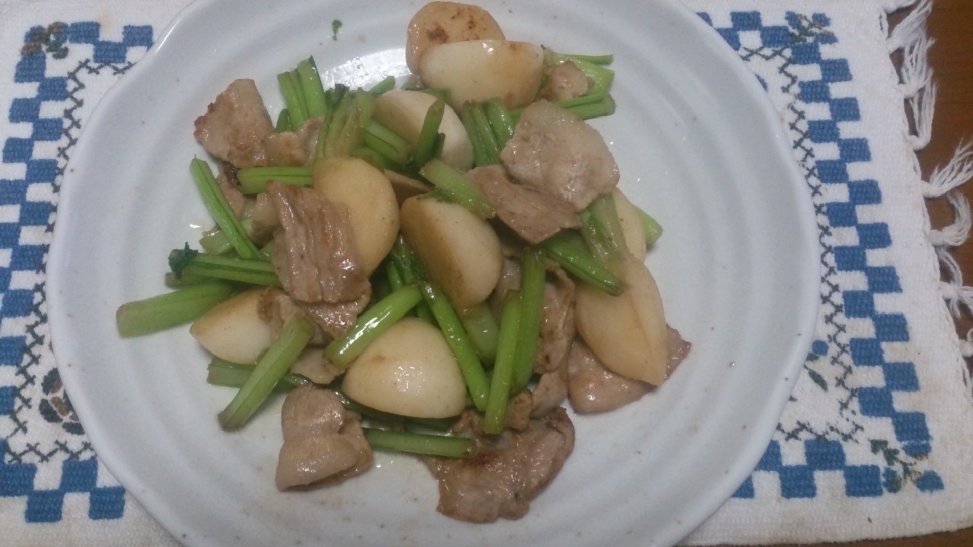 小カブと豚バラ炒めです。