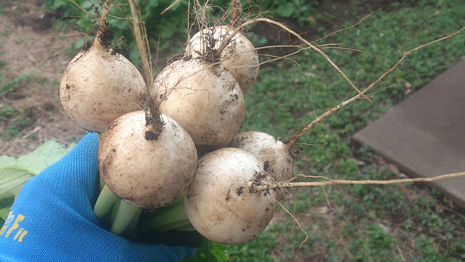 さて、暗くなりかけたので急いで小カブを収穫しました。