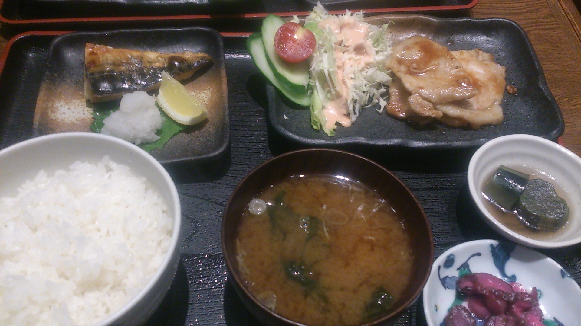 鯖塩焼き、生姜焼き定食です。