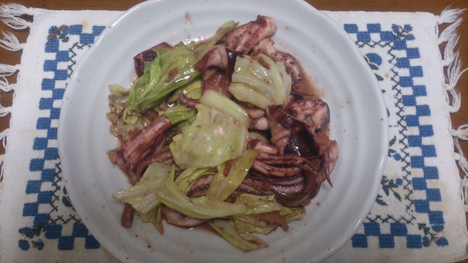 イカとキャベツのマヨ醤油炒めです。
