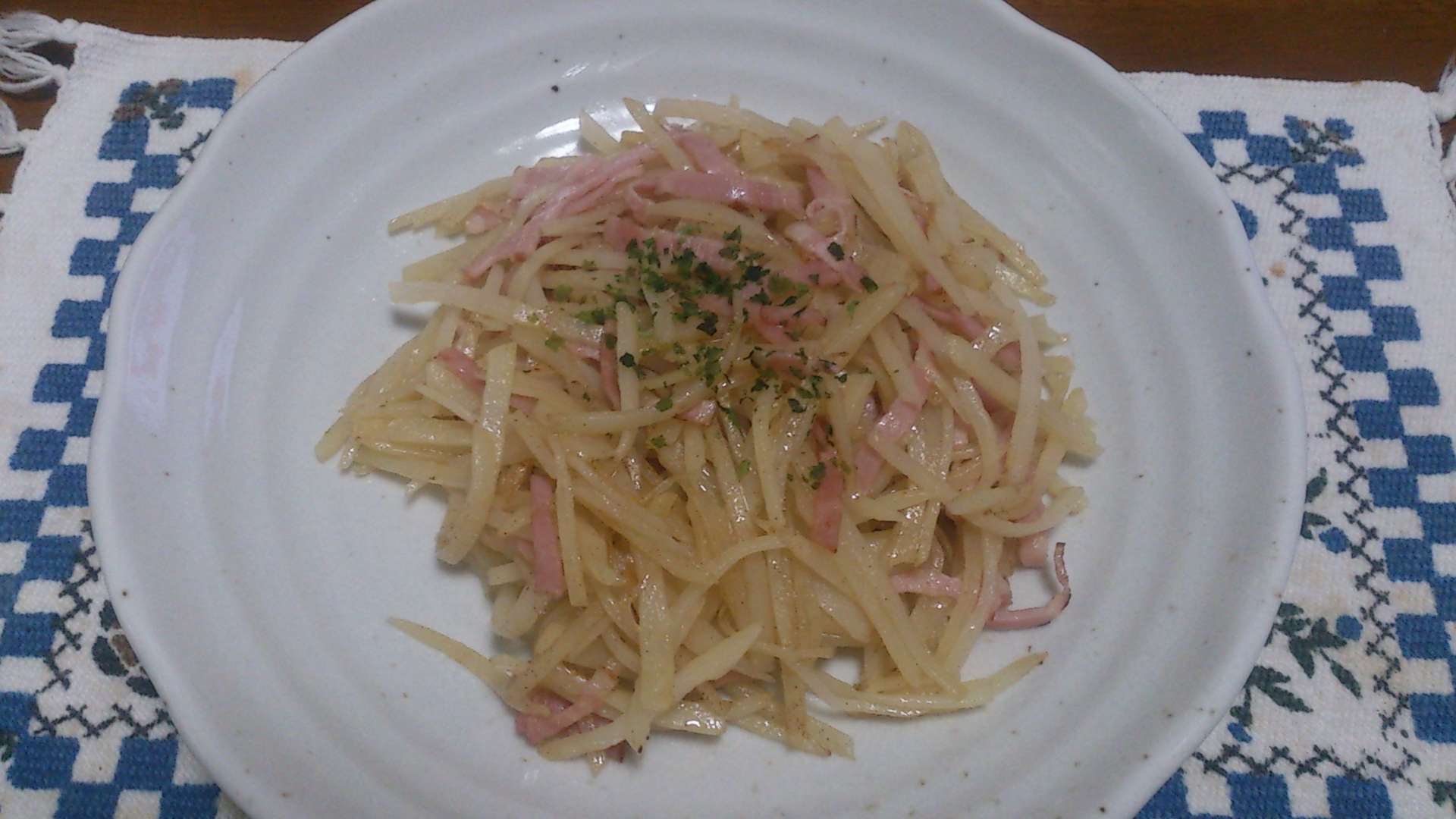 千切りジャガイモの中華風炒めです。